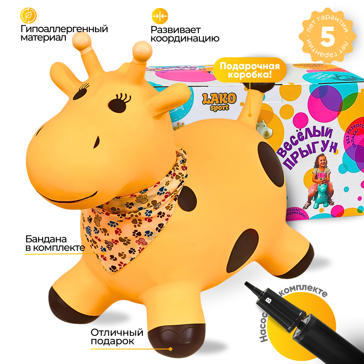 Купить Прыгун Желтый жираф Лола, детская надувная развивающая игрушка-тренажер (в комплекте с насосом и платком-банданой)