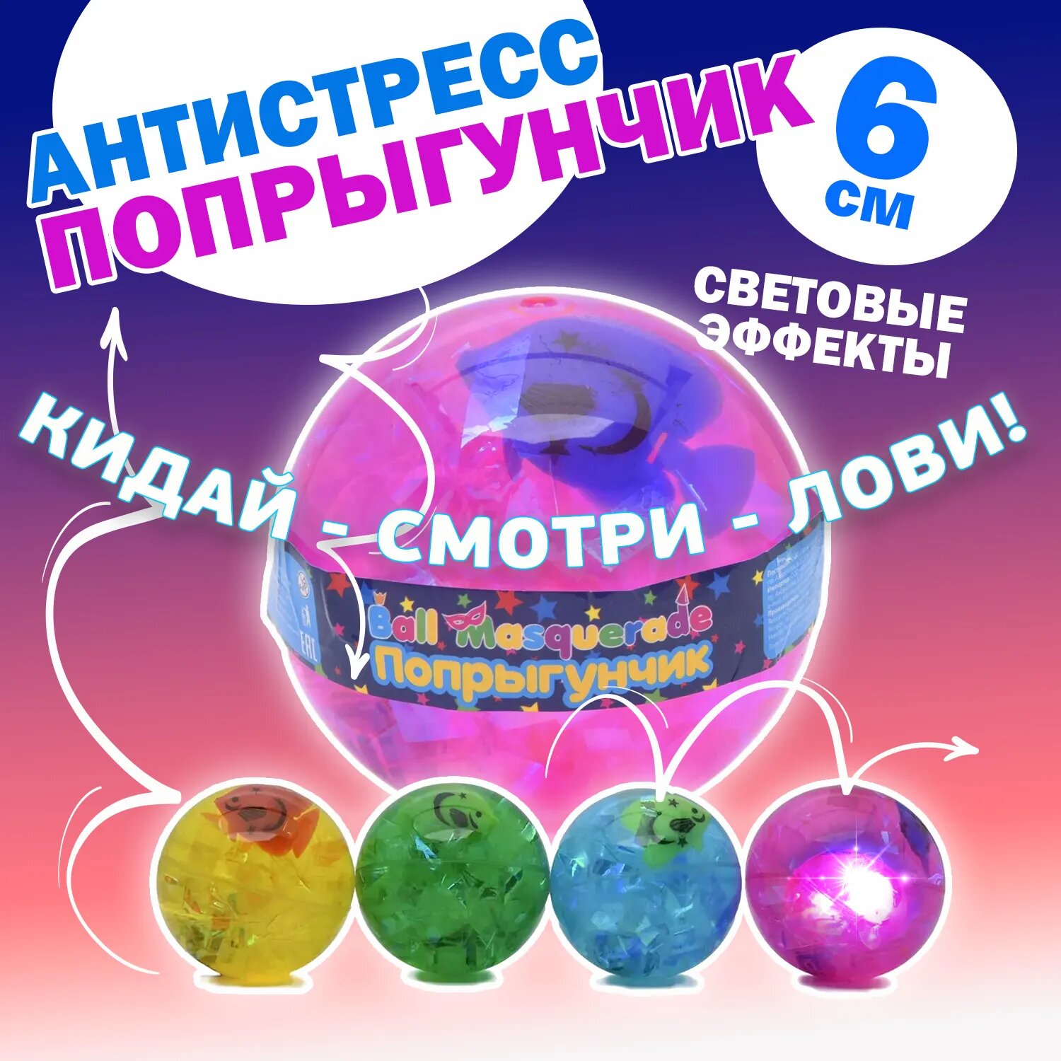Попрыгунчик светящийся Ball Masquerade в ассортименте интересное: