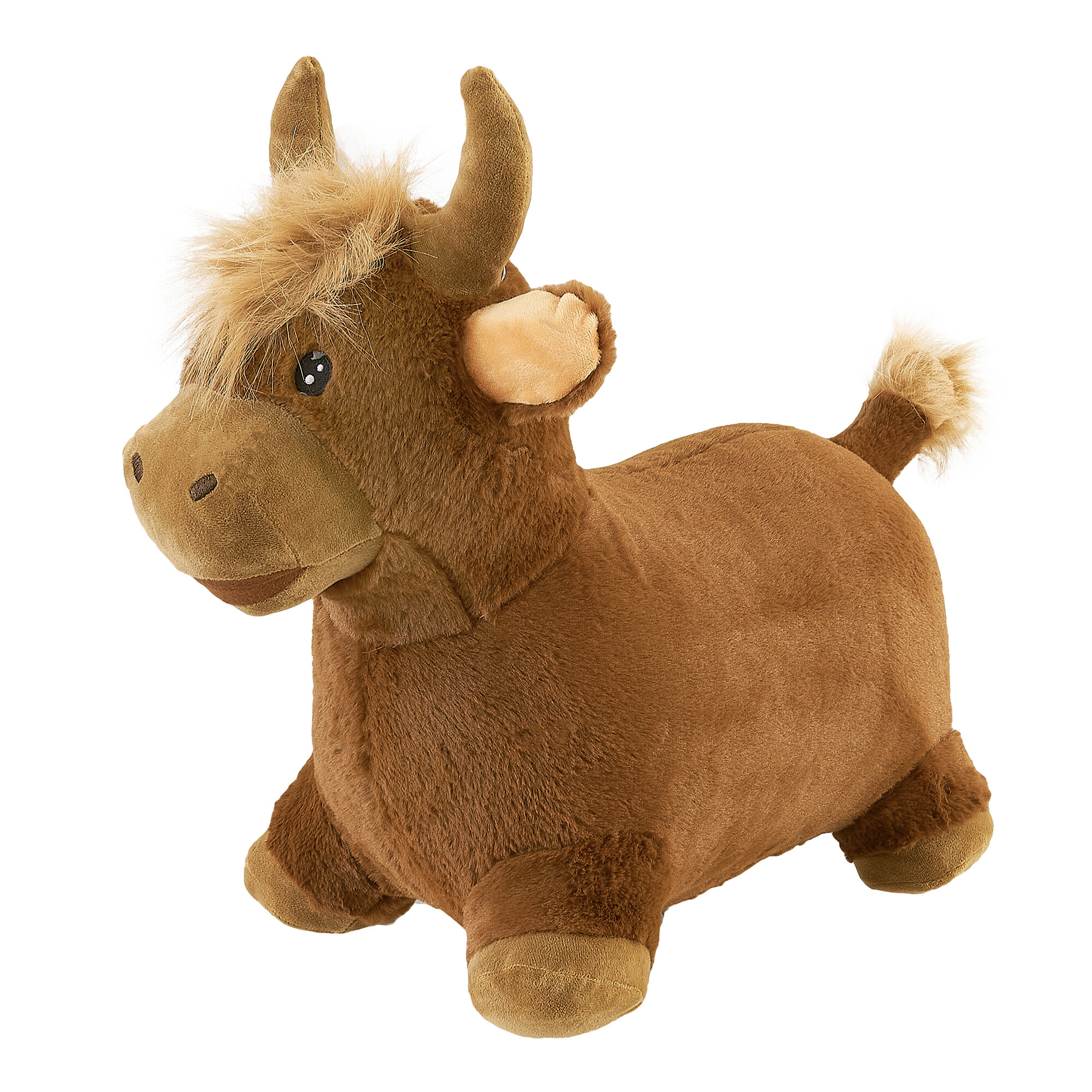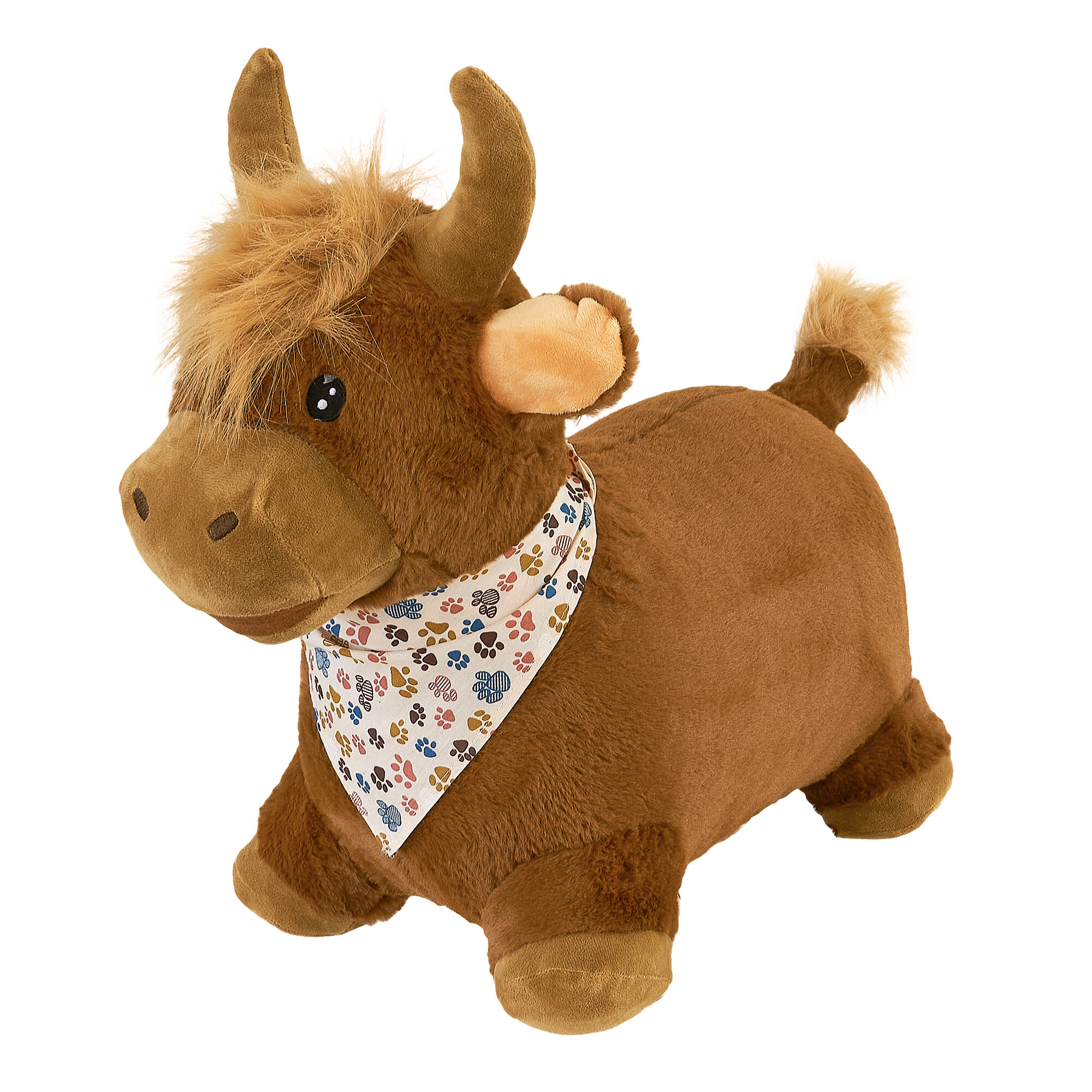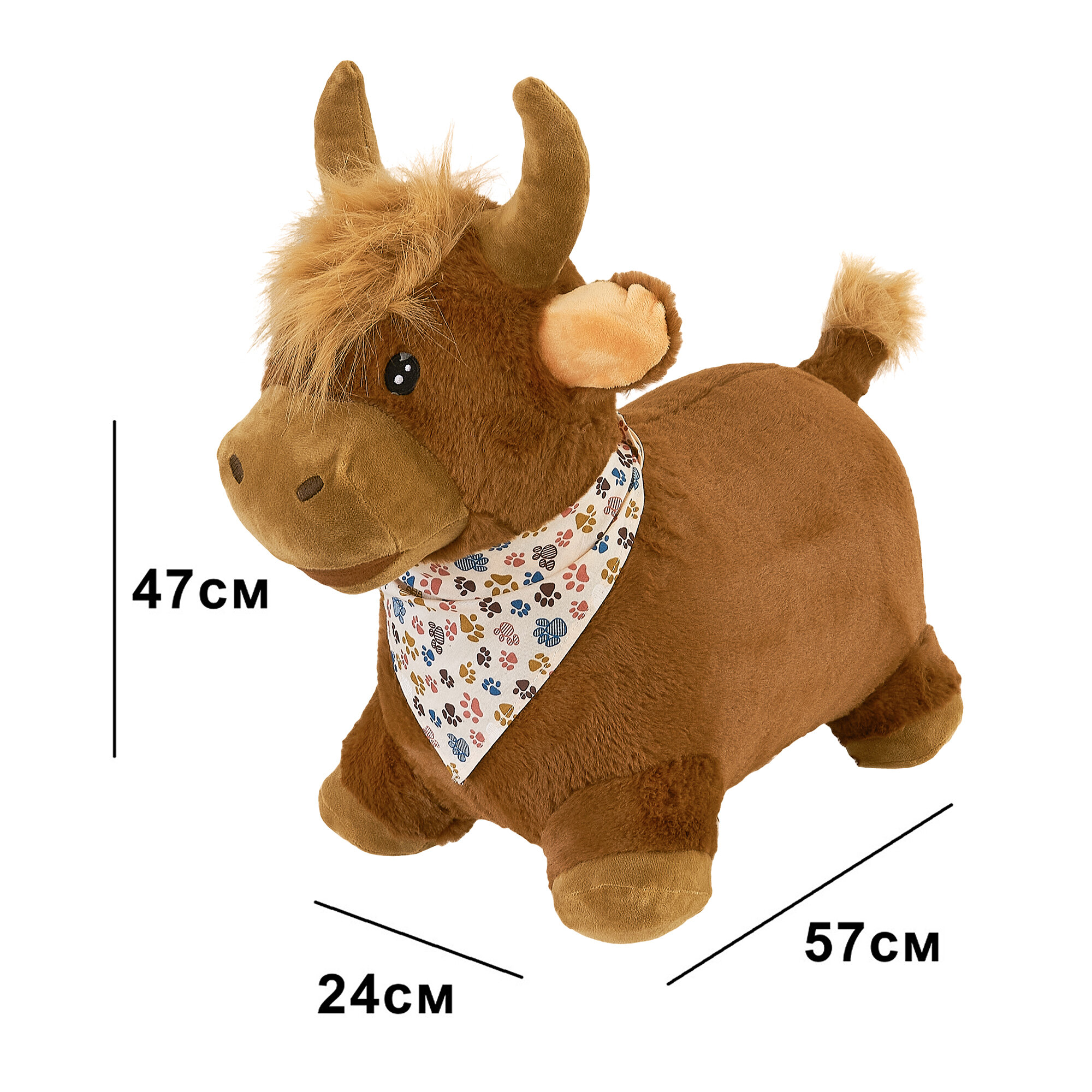Купить Прыгун Плюшевый Коричневый Бычок, детская надувная развивающая игрушка-тренажер в чехле (в комплекте с насосом и платком-банданой)