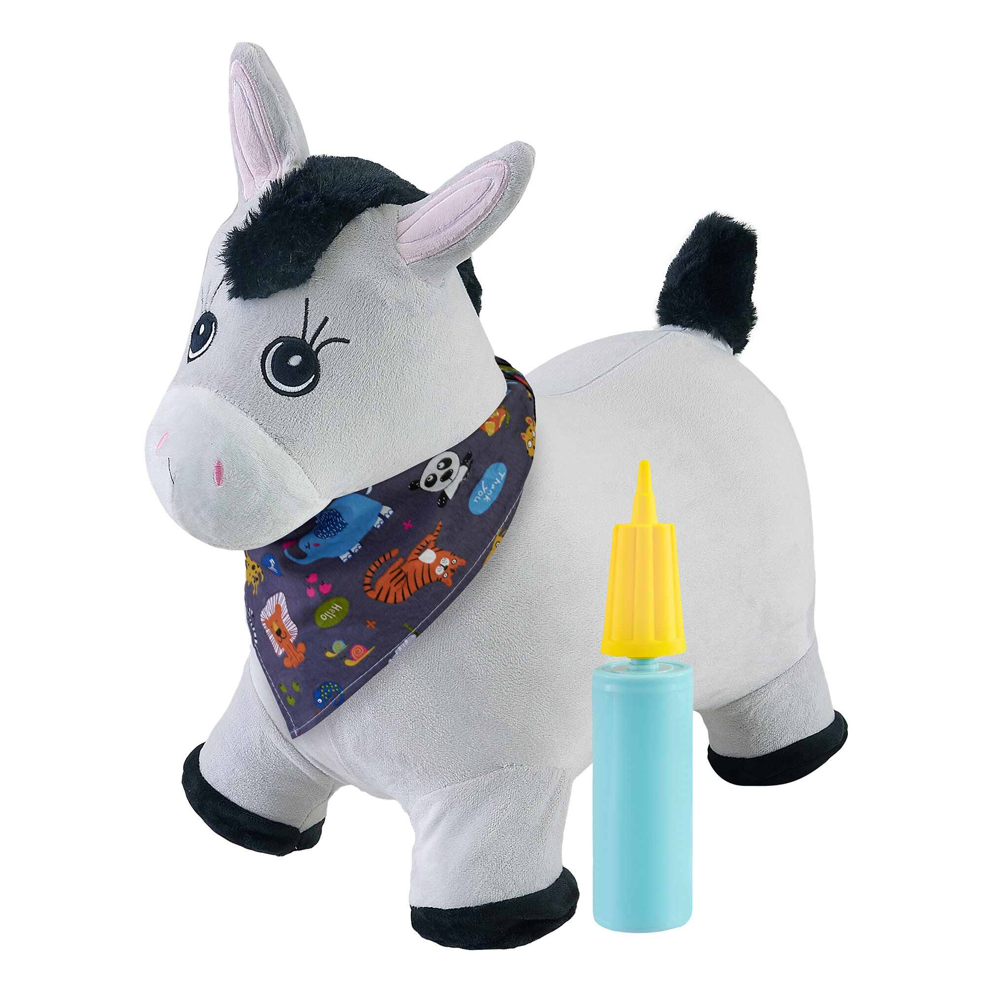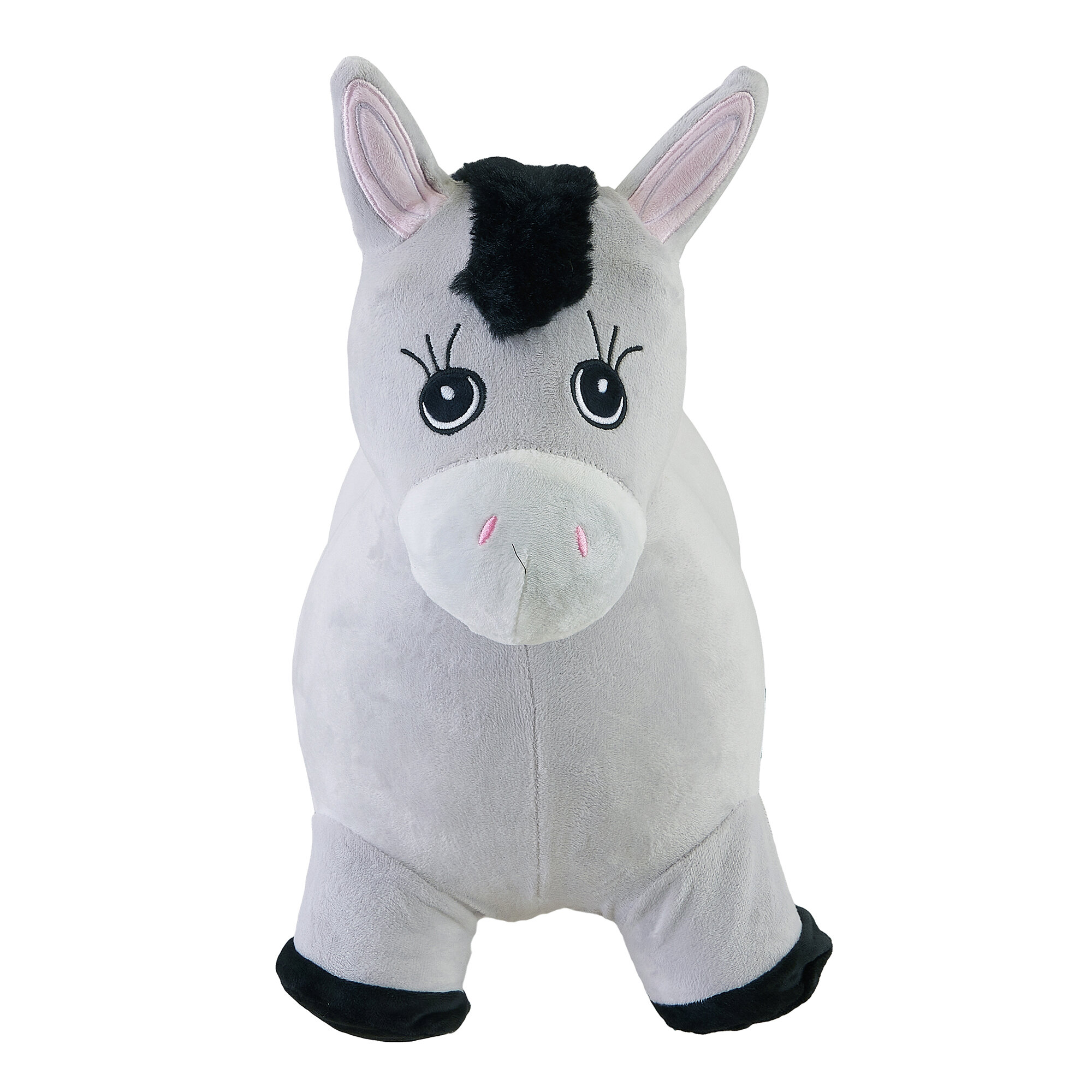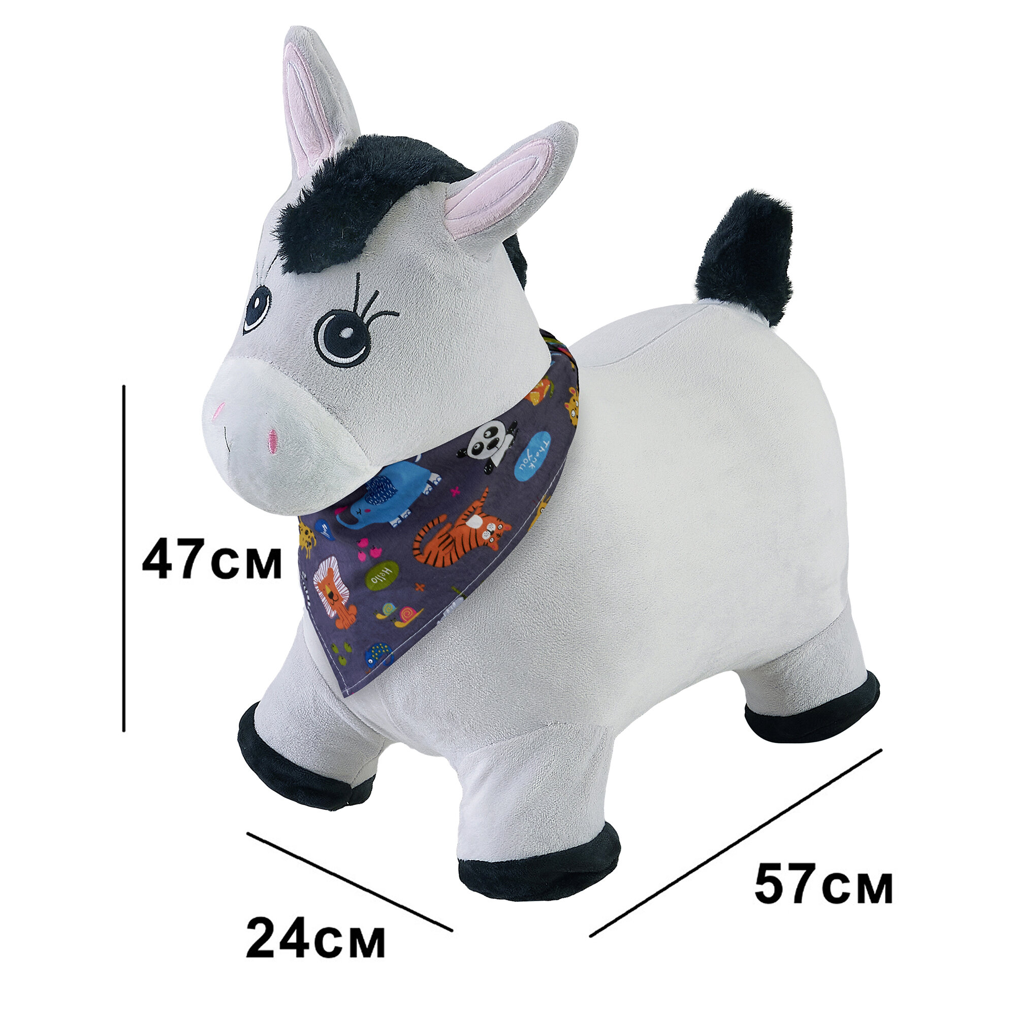 Купить Прыгун Плюшевый Серый Ослик, детская надувная развивающая игрушка-тренажер в чехле (в комплекте с насосом и платком-банданой)