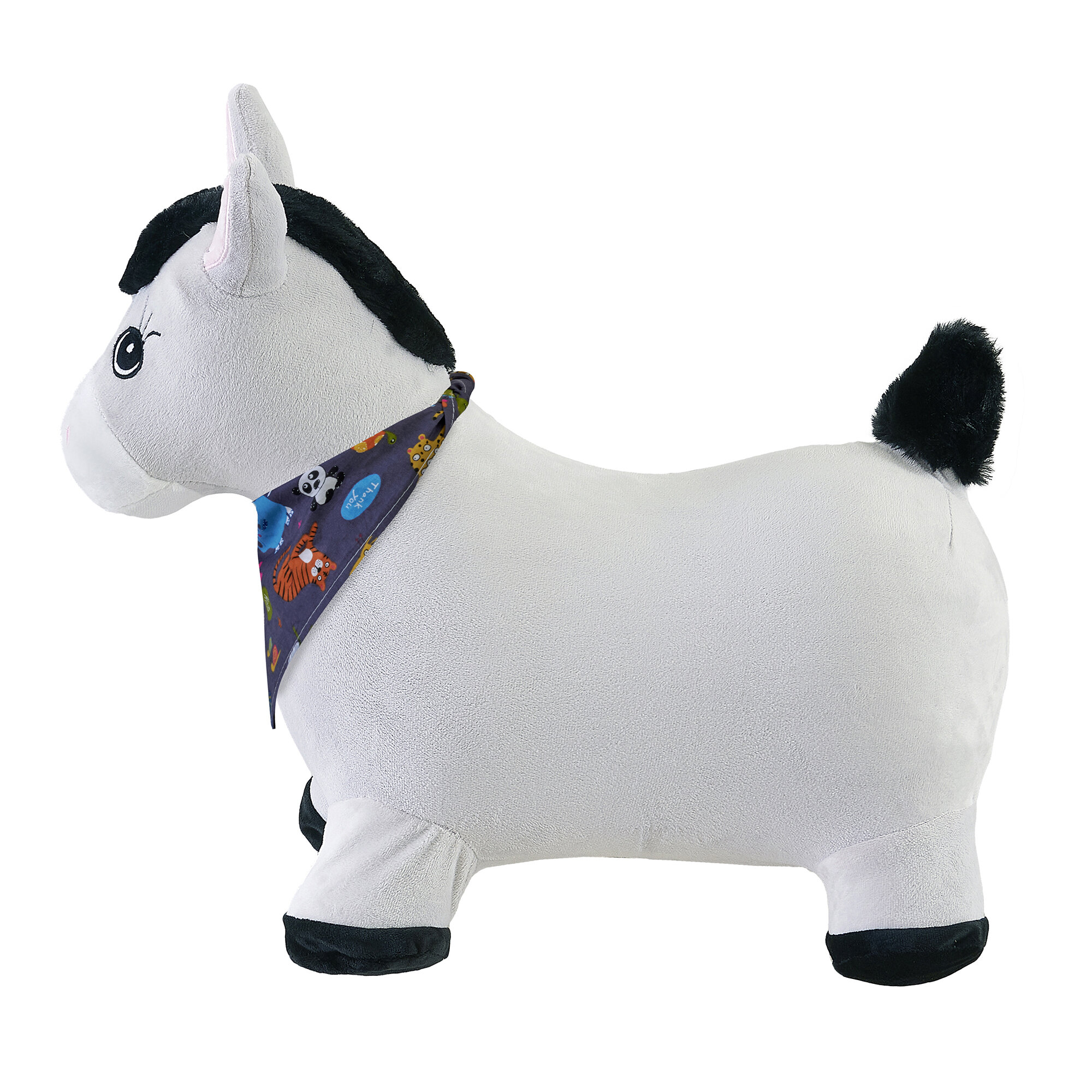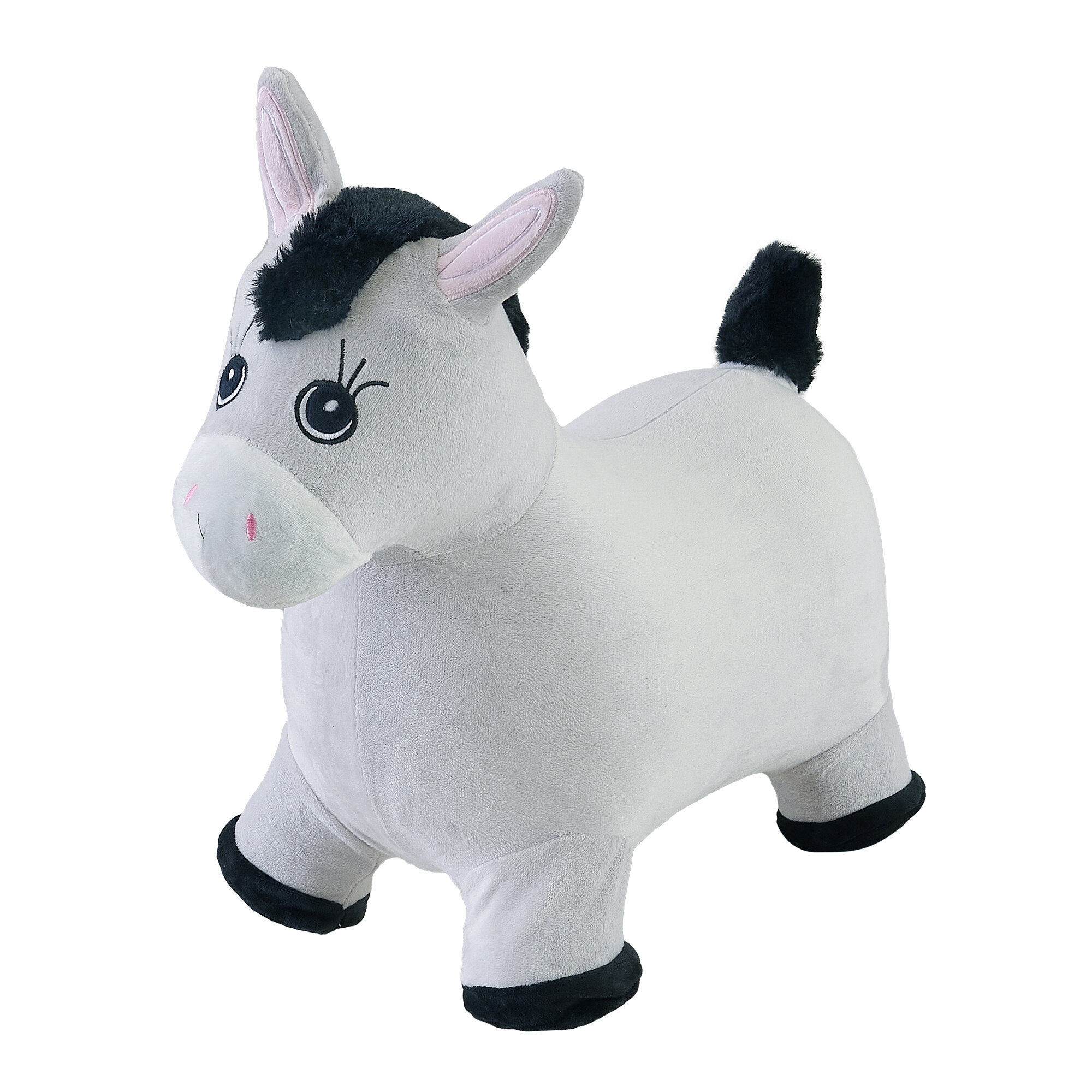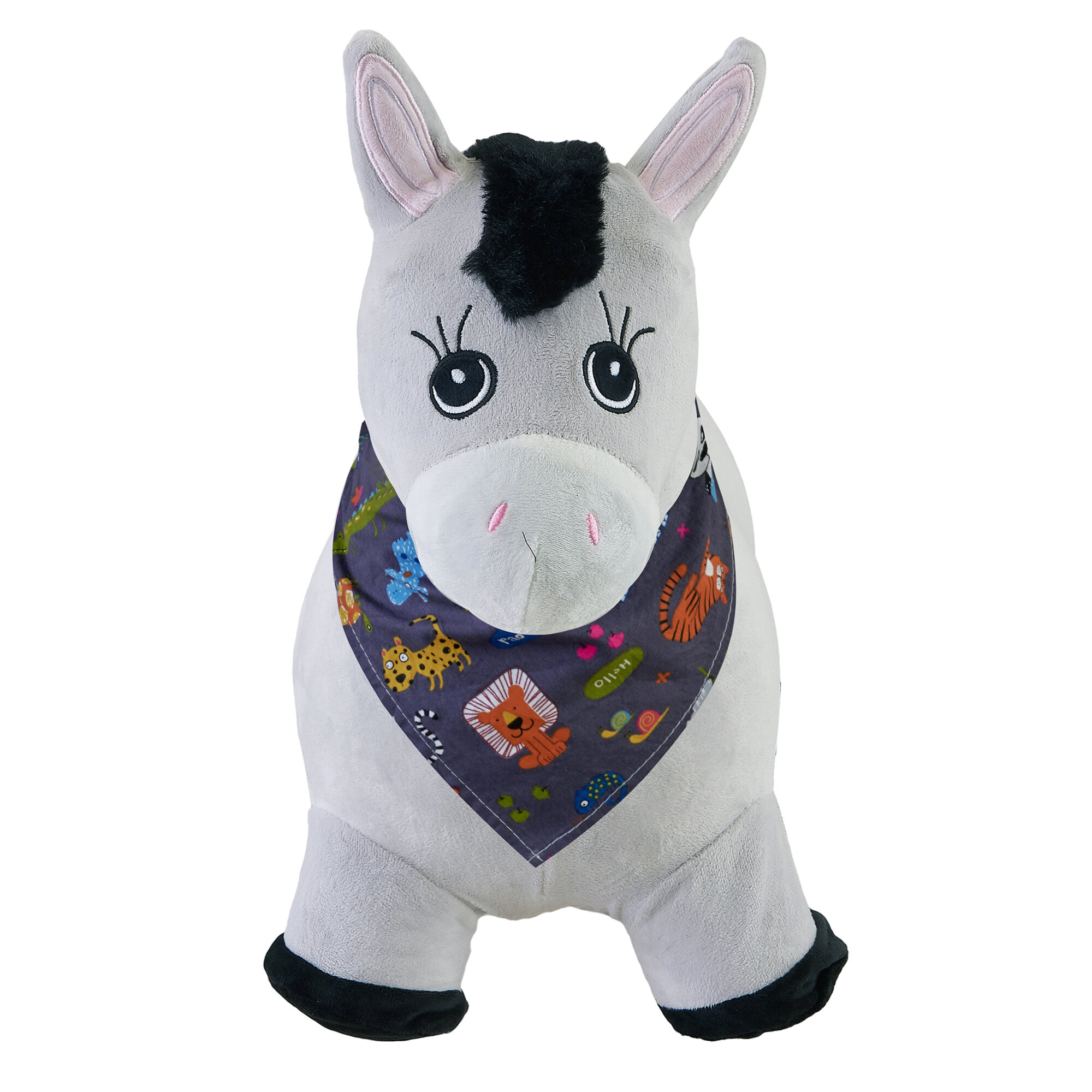 Купить Прыгун Плюшевый Серый Ослик, детская надувная развивающая игрушка-тренажер в чехле (в комплекте с насосом и платком-банданой)