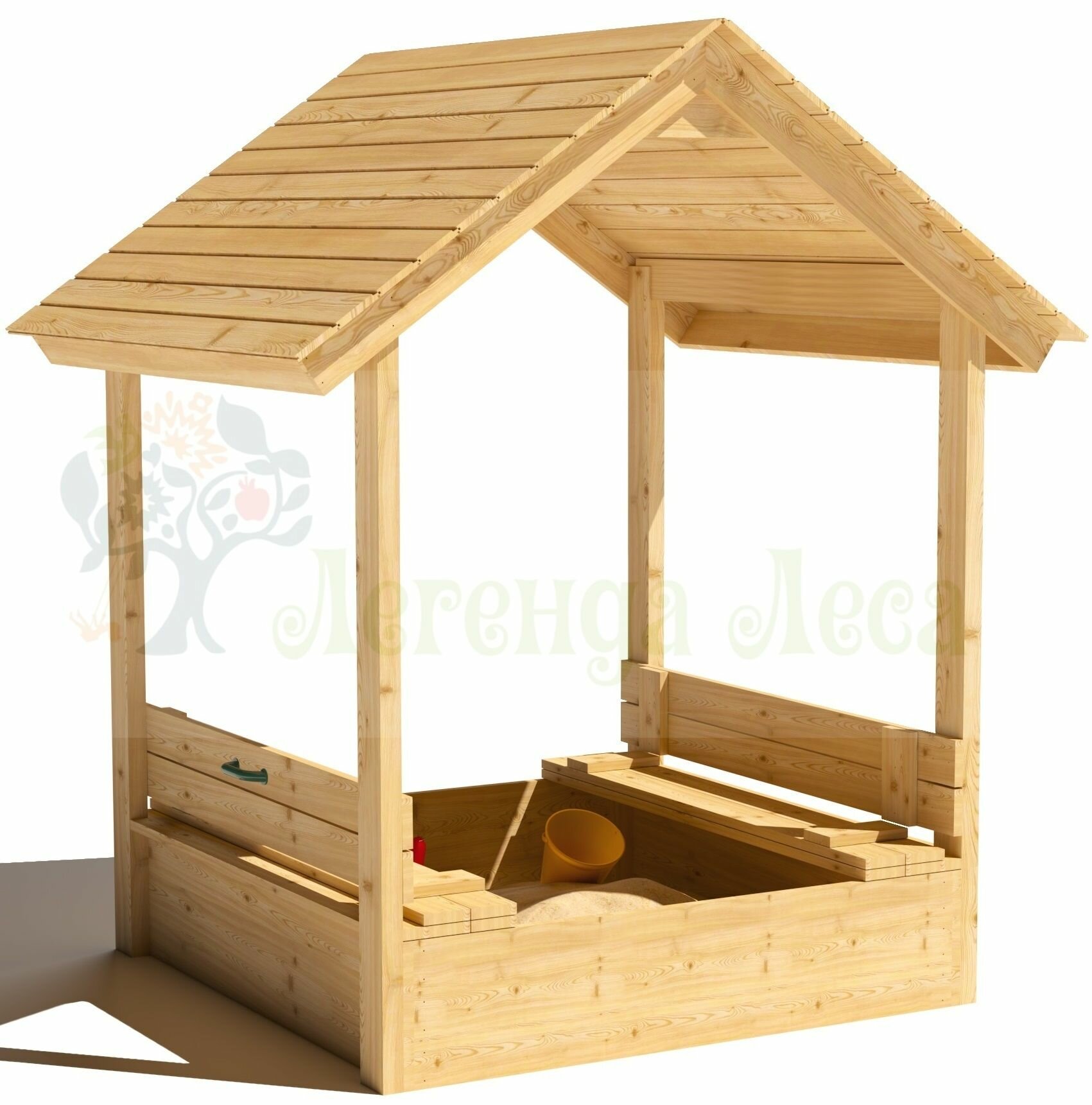 Купить Песочница легенда леса с крышкой и крышей (без окраса) / Детская песочница с лавочками на улицу