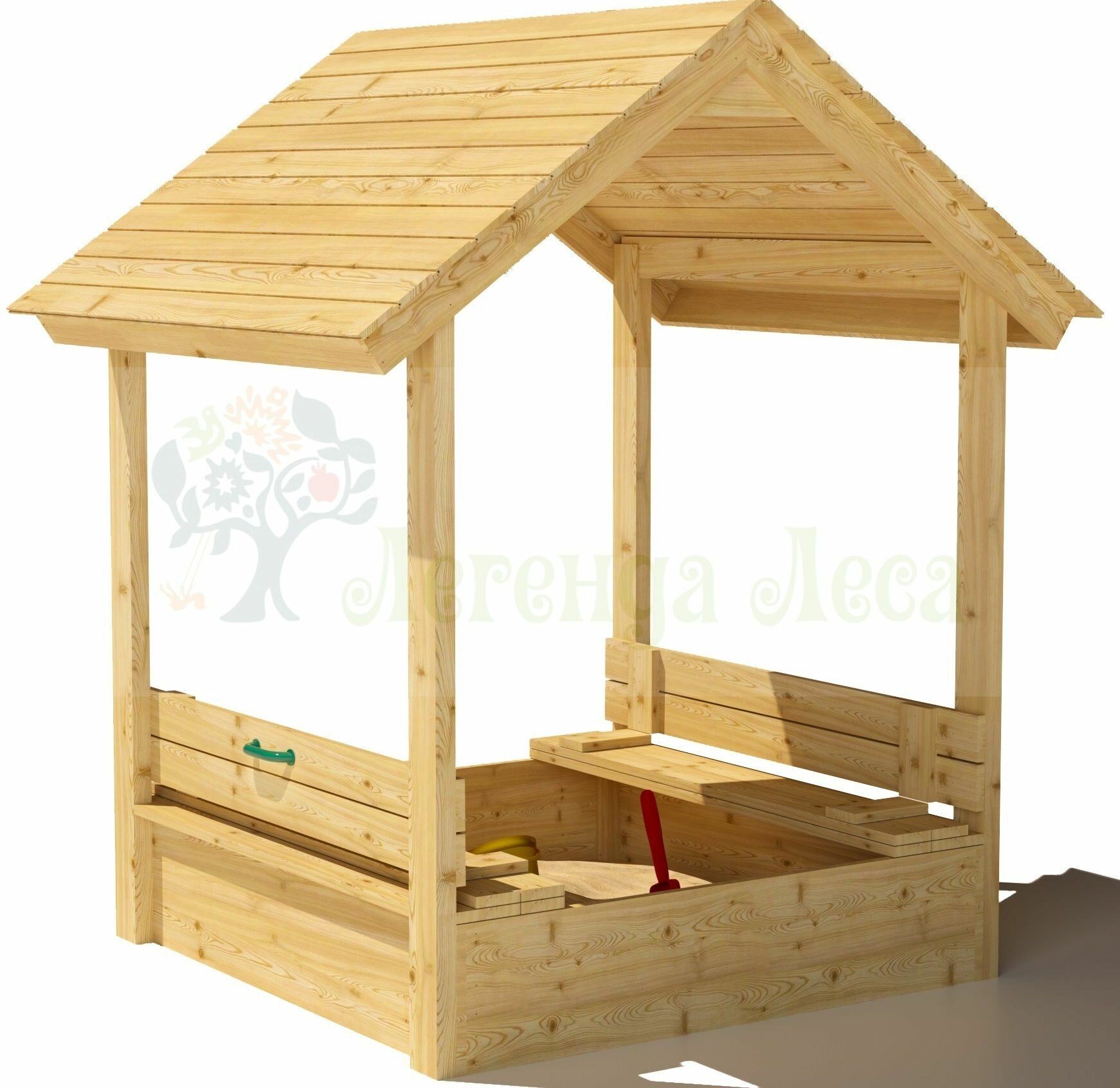 Песочница легенда леса с крышкой и крышей (без окраса) / Детская песочница с лавочками на улицу интересное: