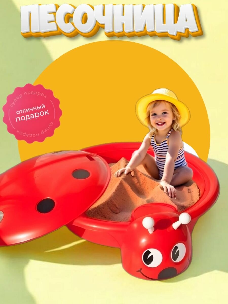 Песочница Божья коровка c крышкой бассейн с отверстием для слива воды интересное: