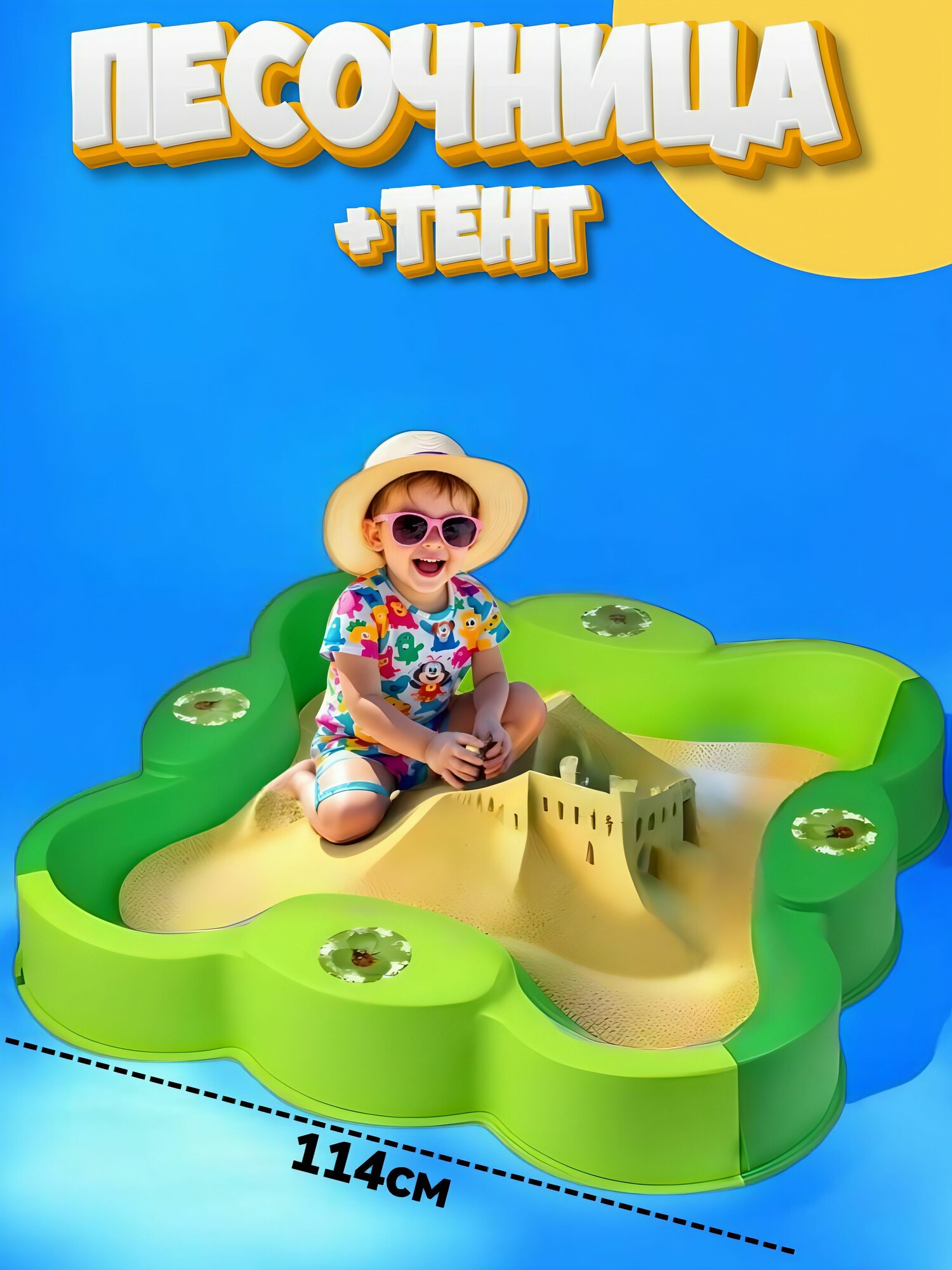 Песочница детская на улицу Клевер сборная зеленая с тентом 114*114*18 см интересное: