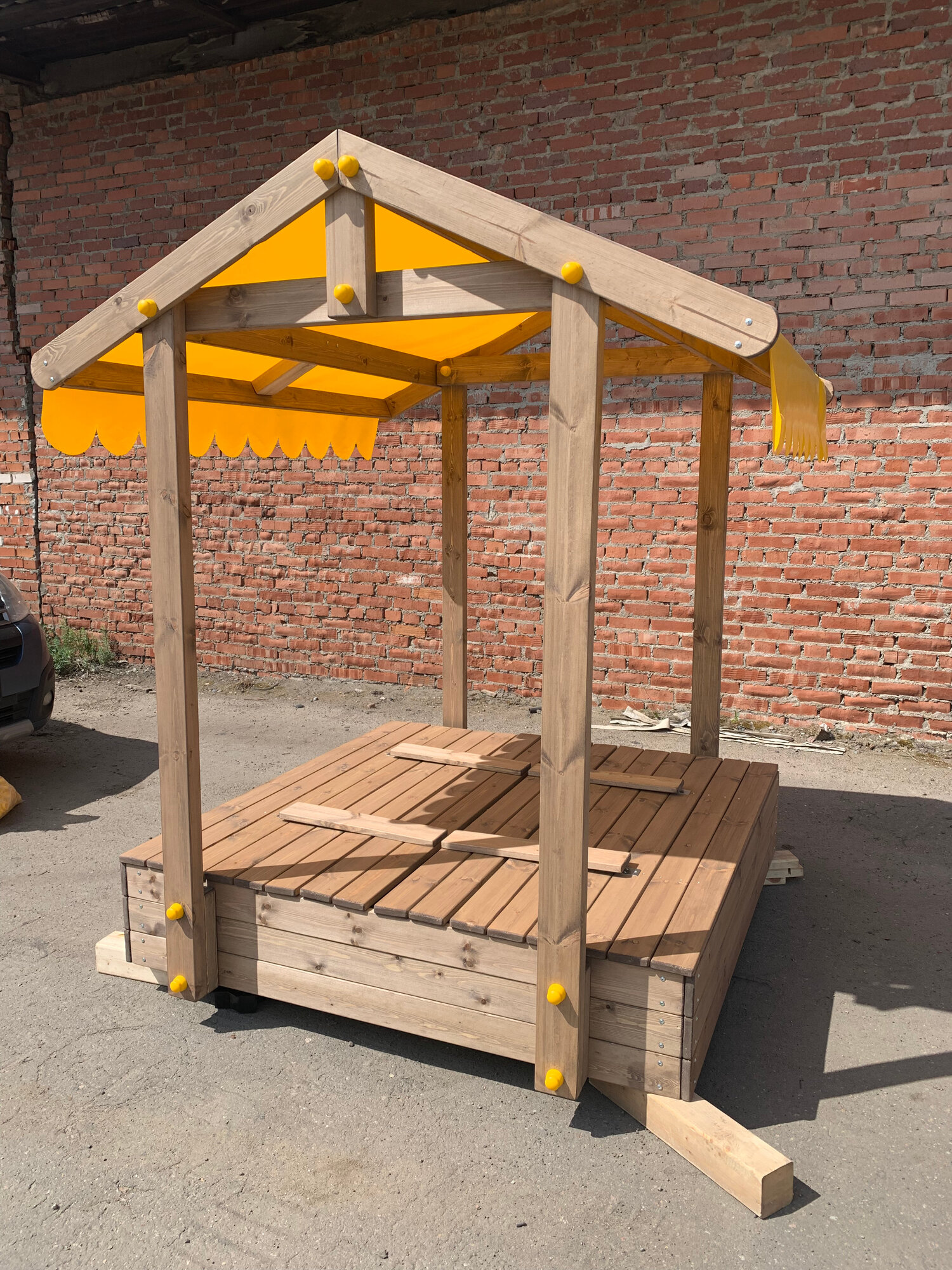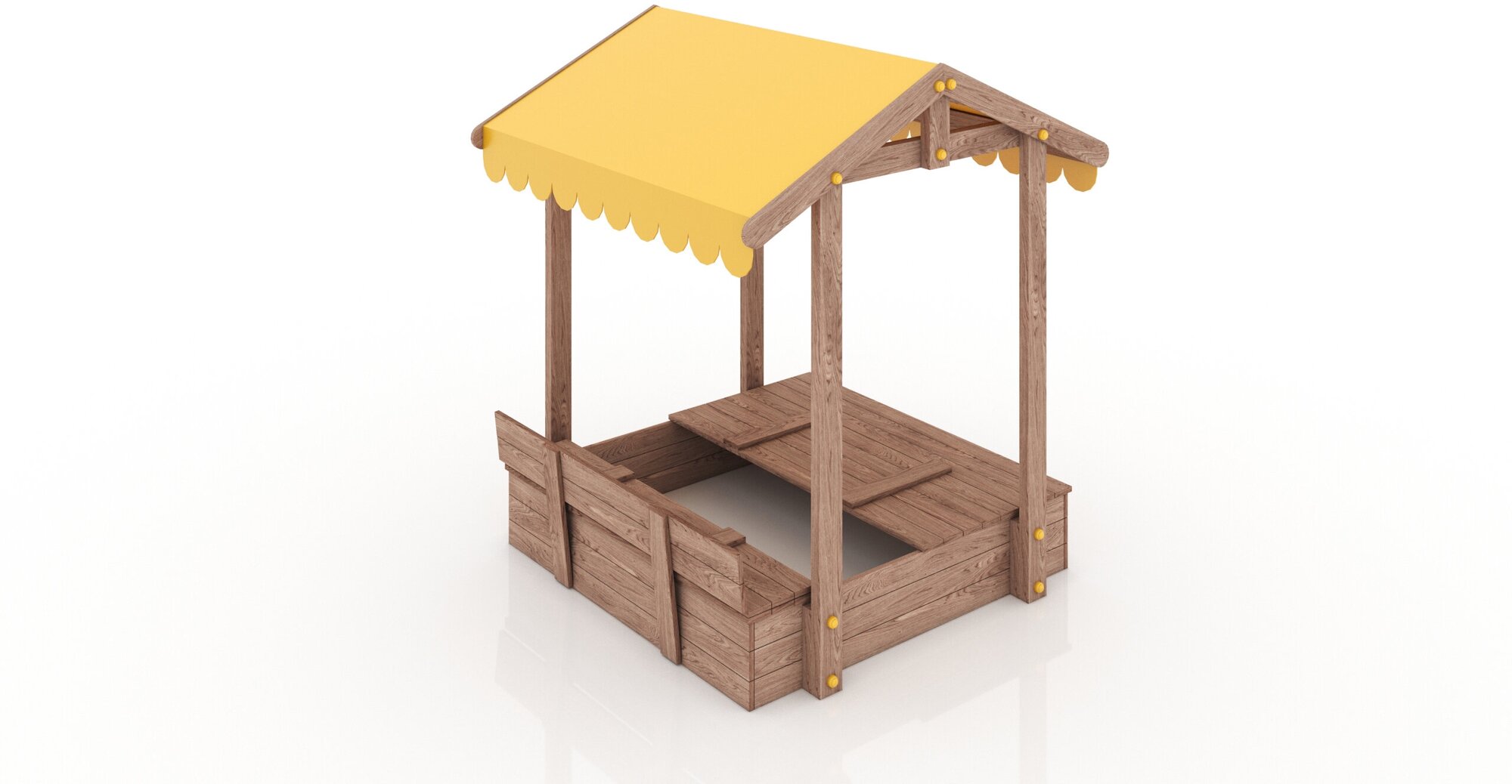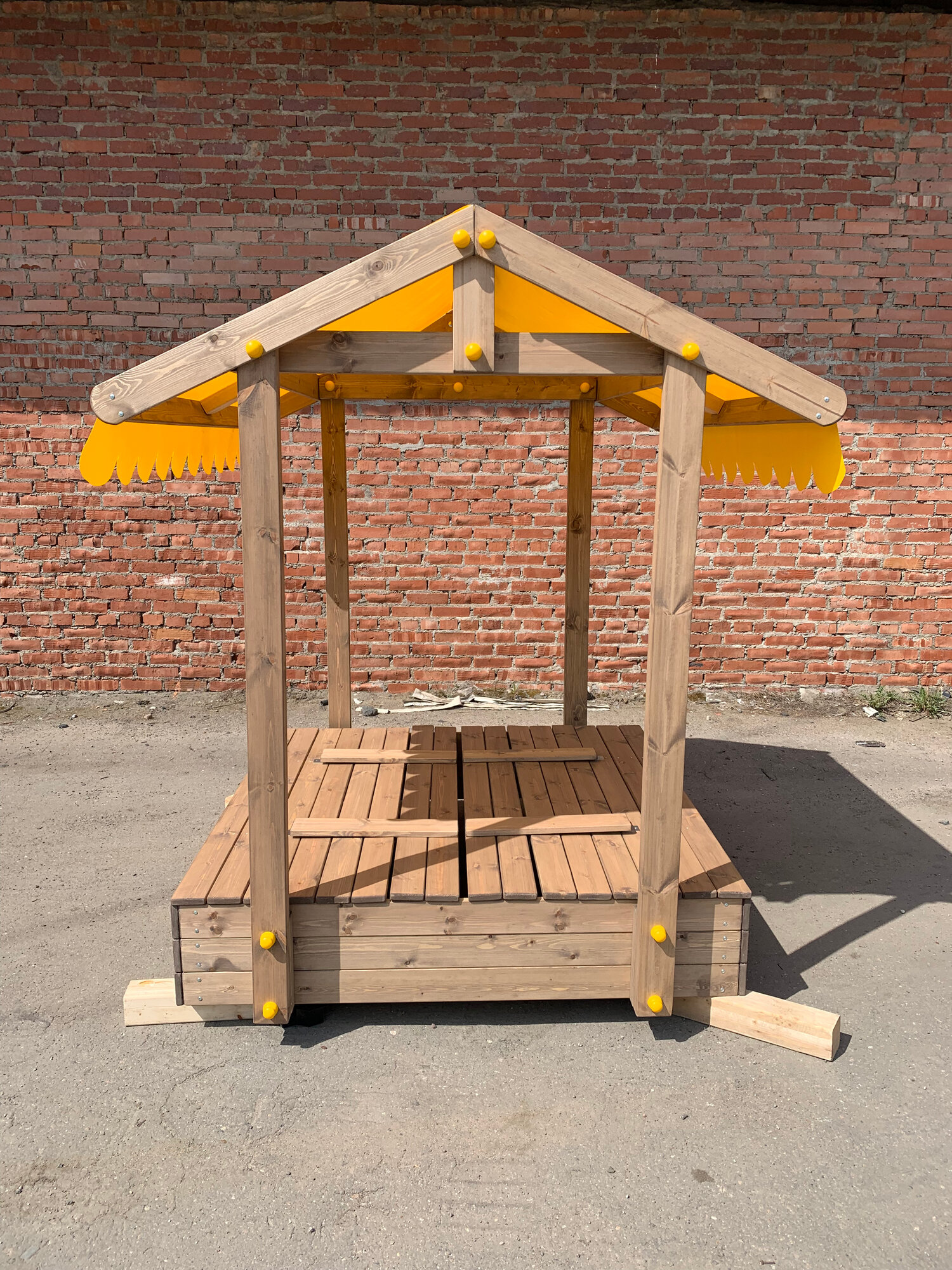 Песочница деревянная "Персия с Крышей", с бортиками - лавочками, 120х120х188 см