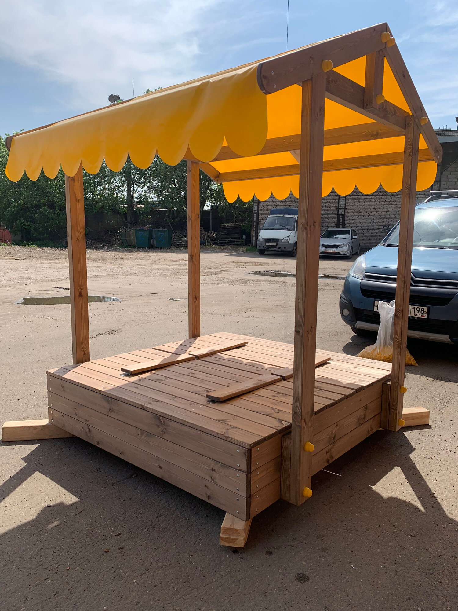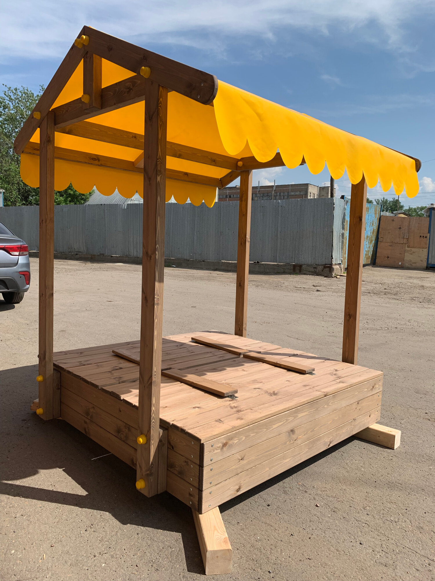 Купить Песочница складная со скамейками "Бабочка с Крышей", 150х150х198 см