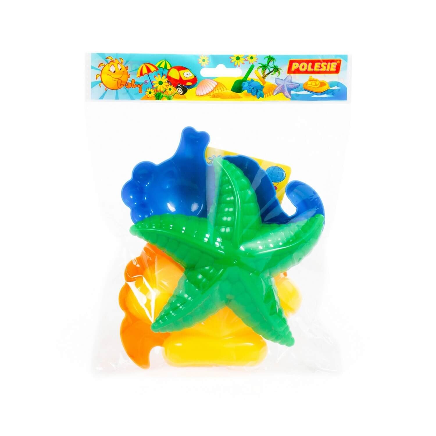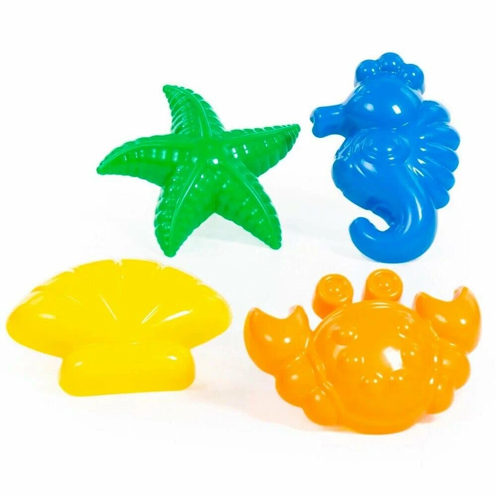 Купить Формочки для песочницы Полесье 53831 "Краб", "Морская звезда", "Ракушка", "Морской конёк", пластик