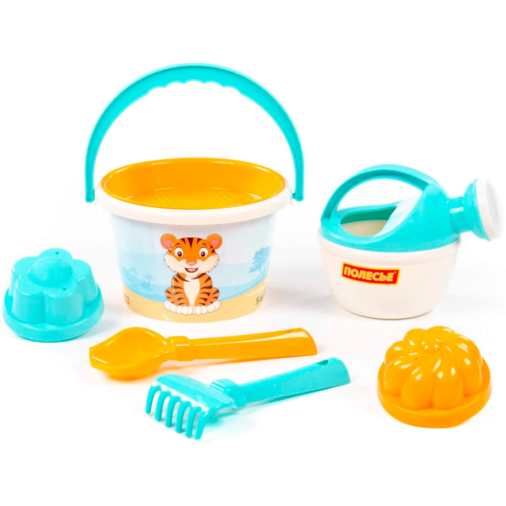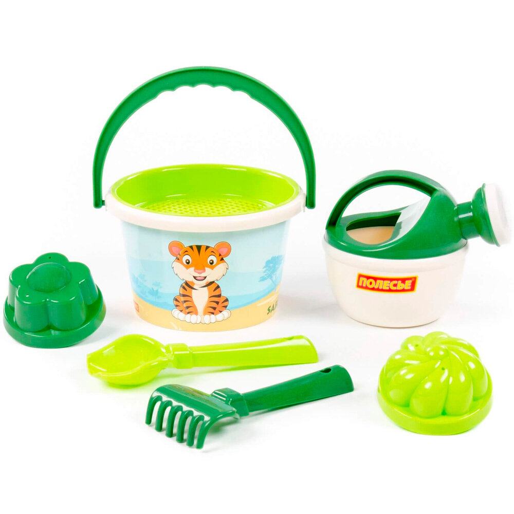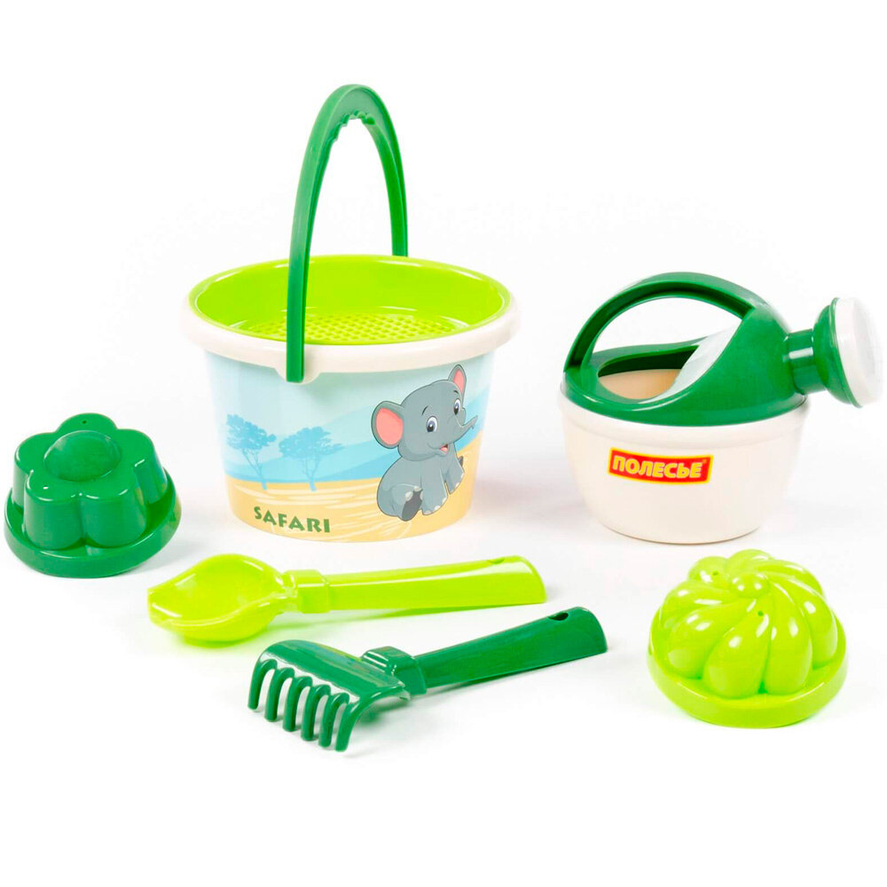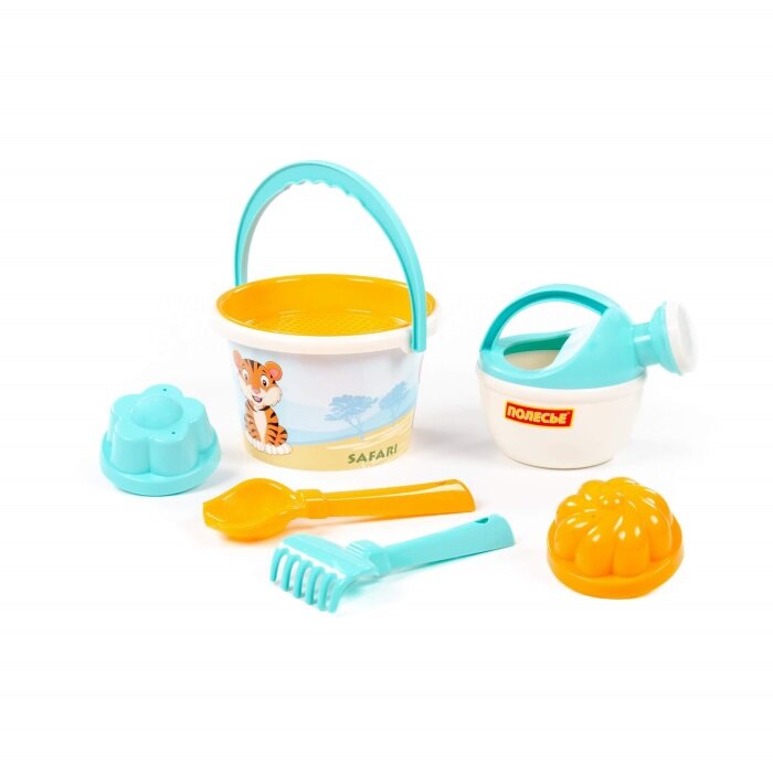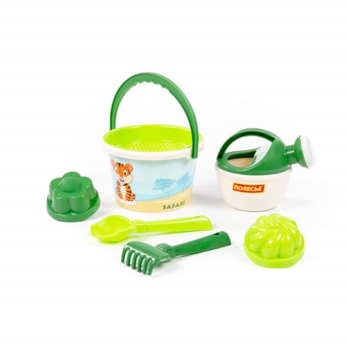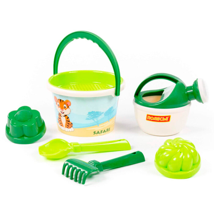 Набор песочный 93288 "Сафари", ведро среднее с наклейкой, ситечко, совок, грабельки, формочки интересное: