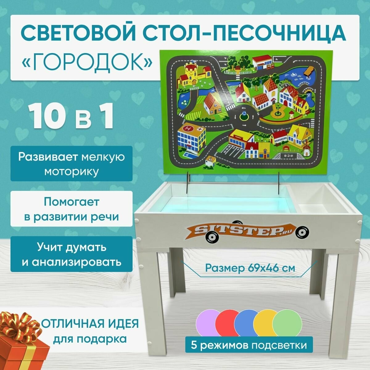 Световая песочница с крышкой Sitstep "Городок", развивающий центр интересное: