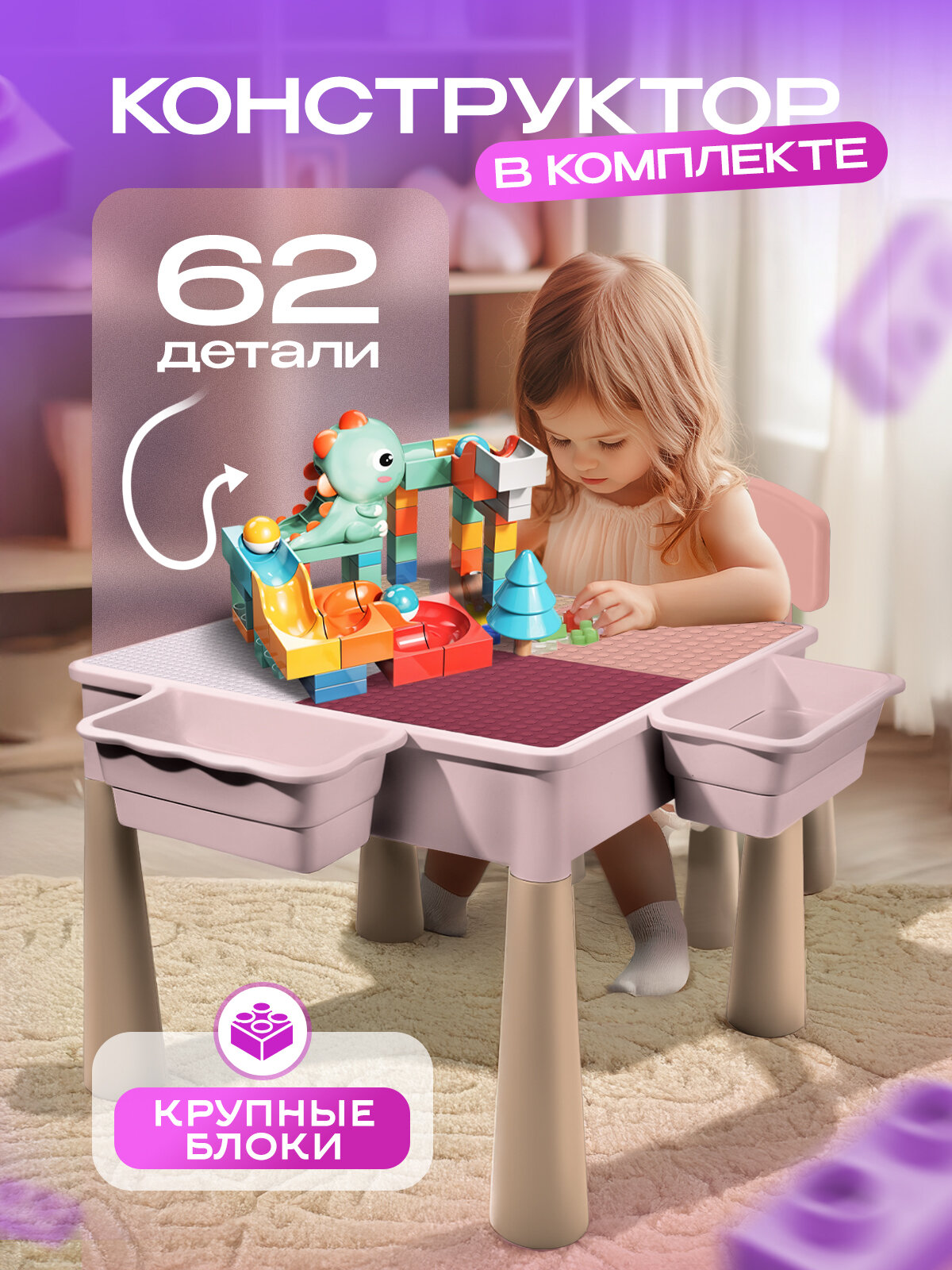 Столик детский , со стульчиком и конструктором, для игр с водой и песком интересное:
