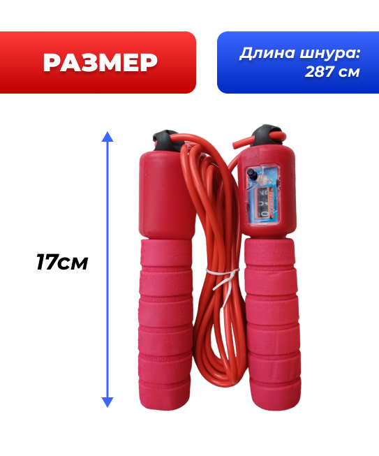 Электронная скакалка с подсчетом прыжков, красная, шнур 2.87 м интересное: