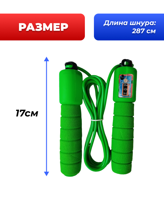 Электронная скакалка с подсчетом прыжков, зеленая, шнур 2.87 м интересное: