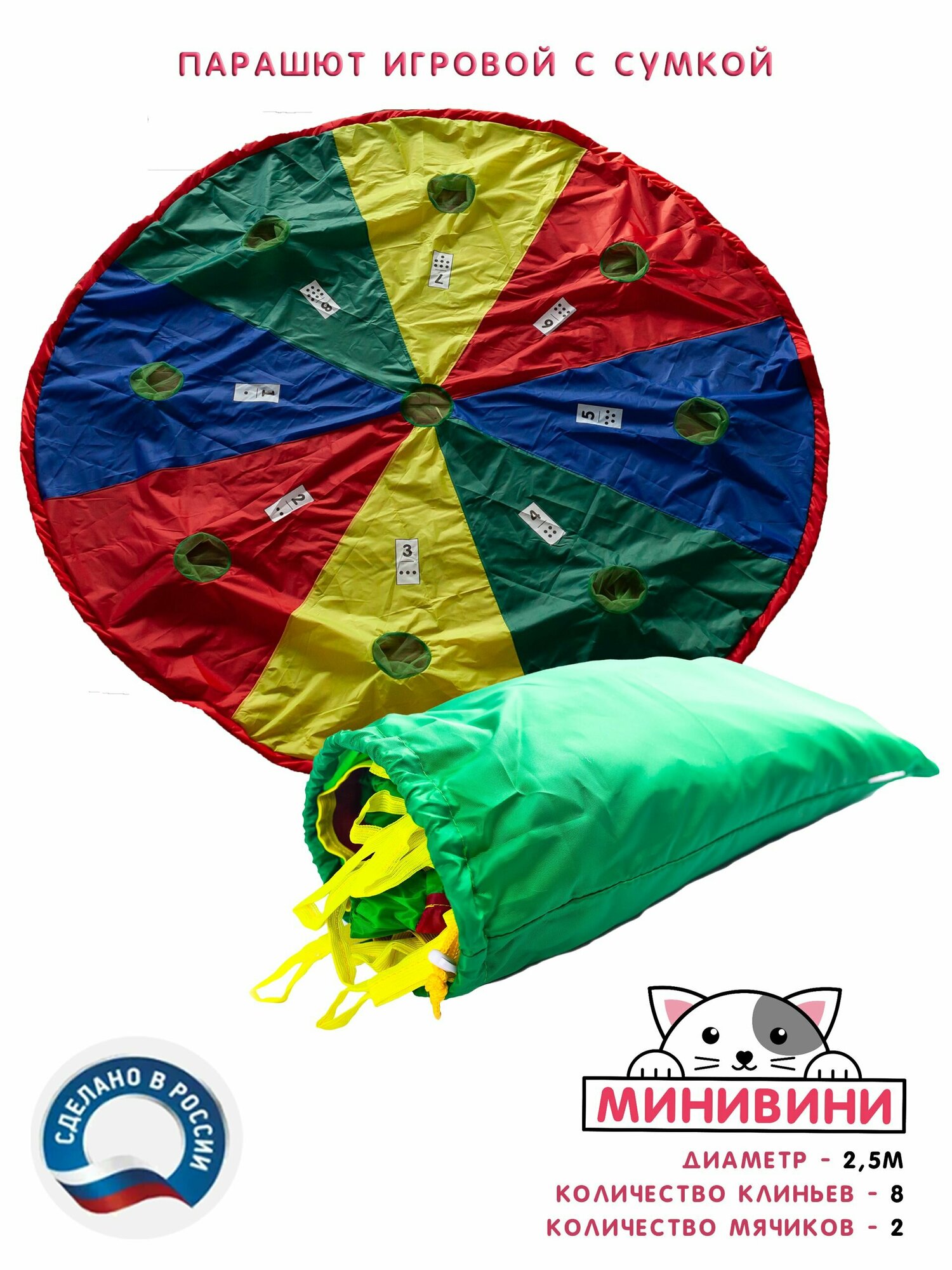 Детский спортивный товар Парашют (2,5м) с сумкой для игр и эстафет минивини