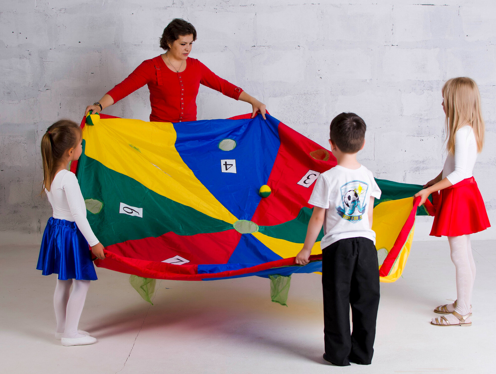 Детский спортивный товар Парашют (5 м) с сумкой для спортивных игр и эстафет минивини