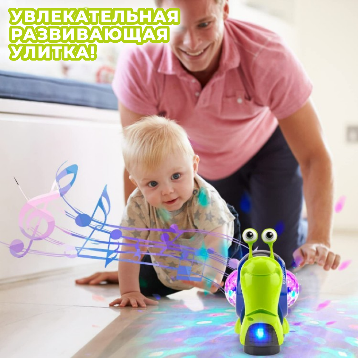 "Диско Улитка" - интерактивная музыкальная игрушка на батарейках, зеленая интересное: