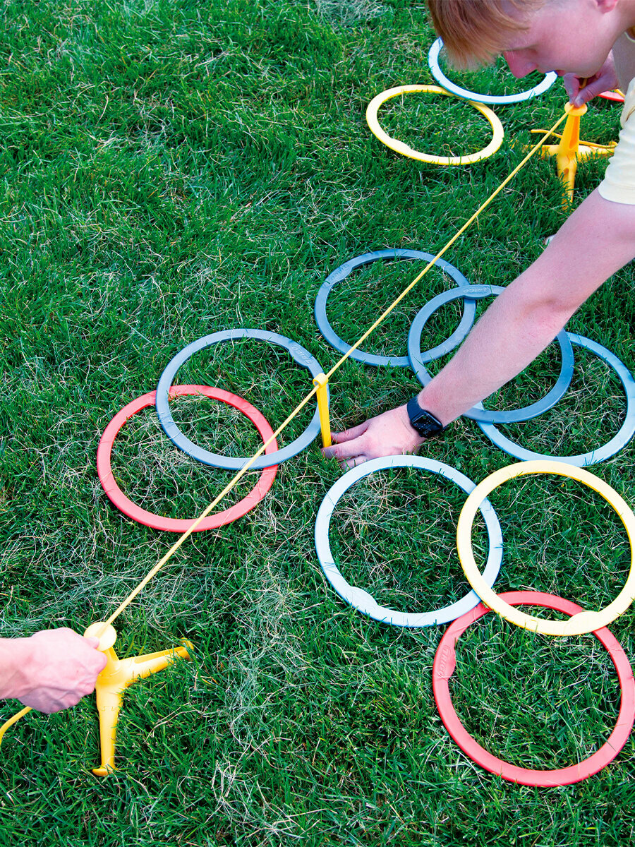 | Комплектация | 3 треногих колышка, 12 разноцветных колец для набрасывания (синие, красные, желтые и серые) и сумка |