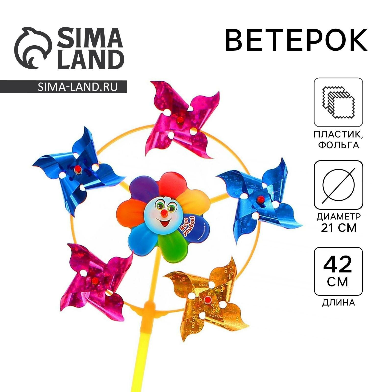 Ветерок детский с фольгой Funny toys "Море улыбок", h=42 см и d=21 см, разноцветный интересное:
