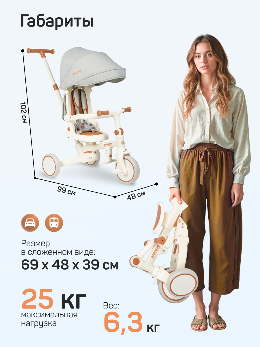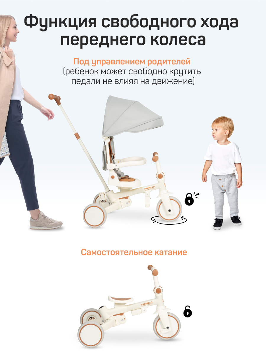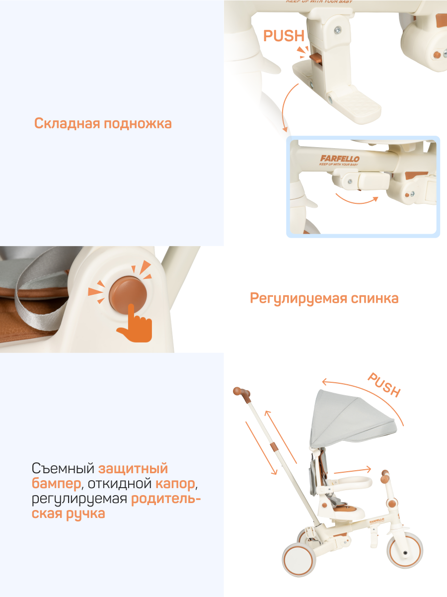 Детский трехколесный велосипед Farfello 698, складной, до 25 кг, от 1 до 5 лет, серый интересное: