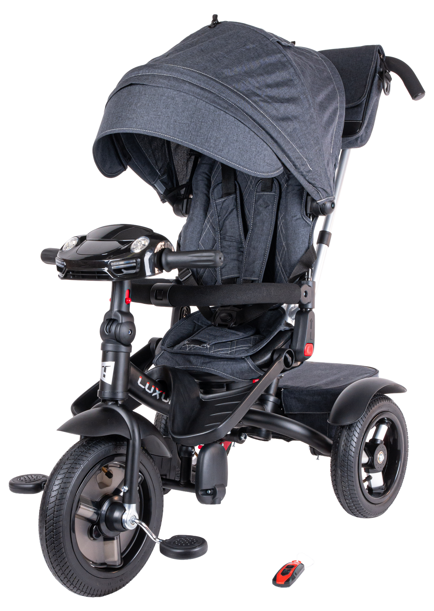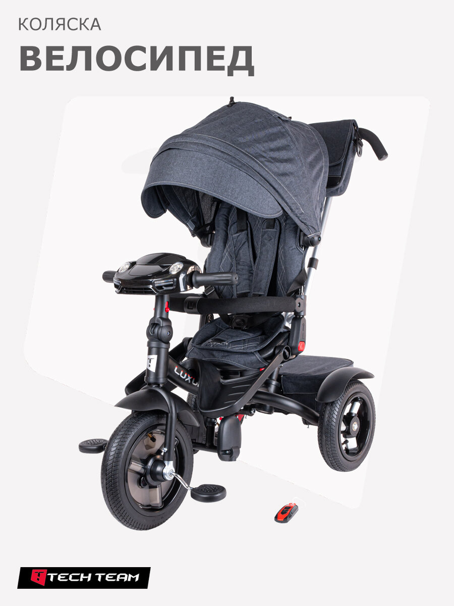 Трёхколесный велосипед/коляска с ручкой TechTeam Luxury, чёрный (мокрый асфальт) интересное: