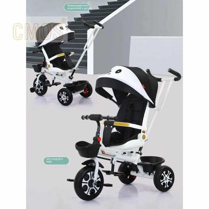 Велосипед-коляска детский, трехколесный с ручкой,Белая кошка интересное: