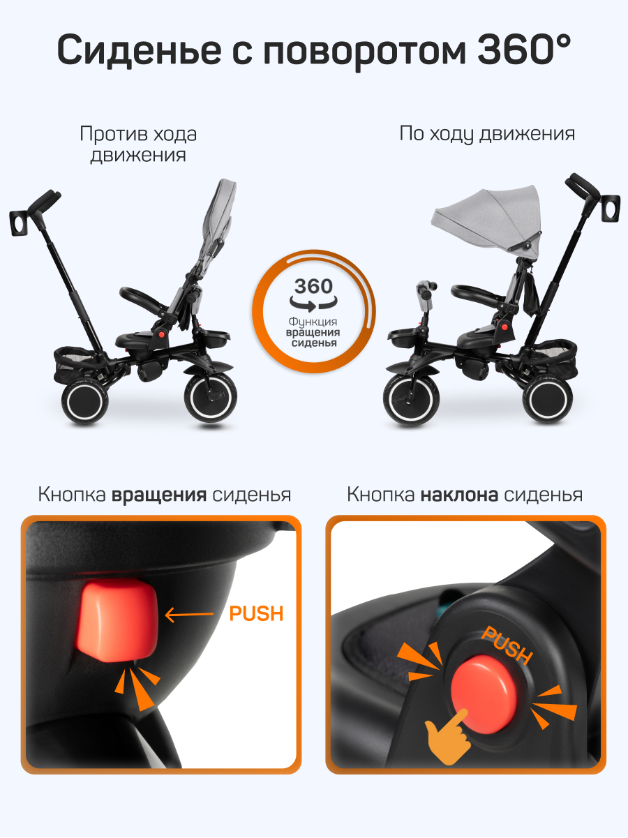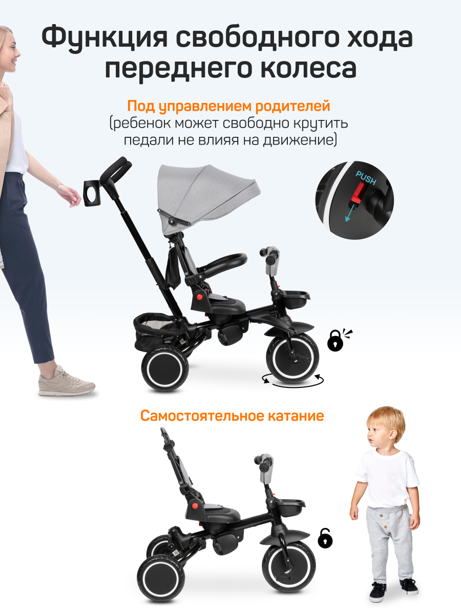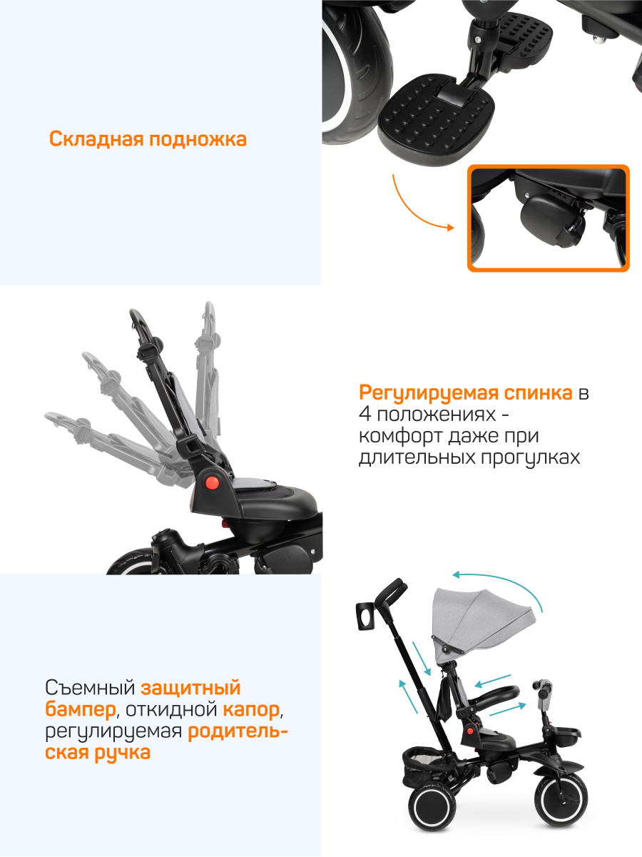Велосипед трехколесный Farfello 6800, складной, с родительской ручкой, от 1 до 5 лет, серый интересное: