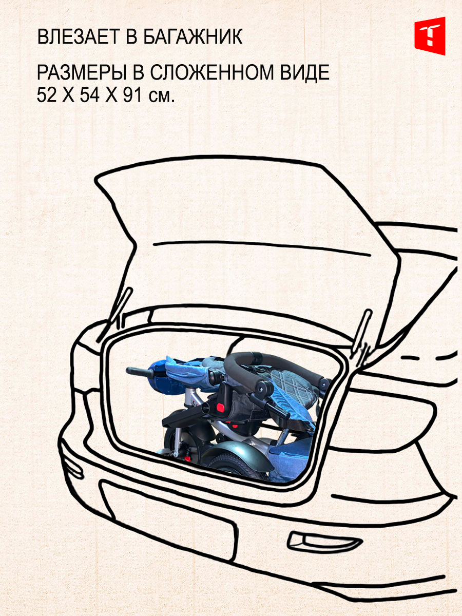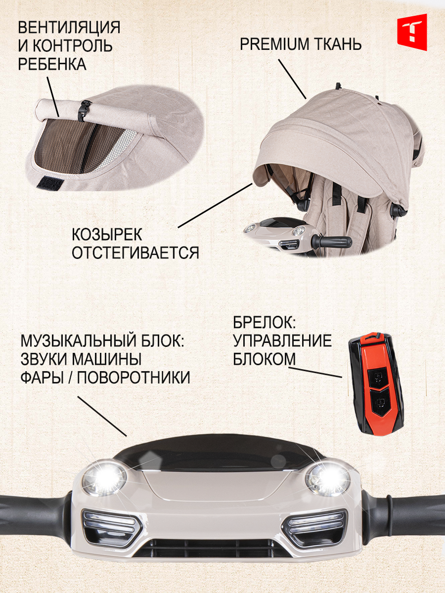| Дополнительная информация | поворотное на 180° сиденье, ручка-толкатель регулируется по высоте, регулируемая по наклону спинка сидения, электронный блок со звуком и светом |