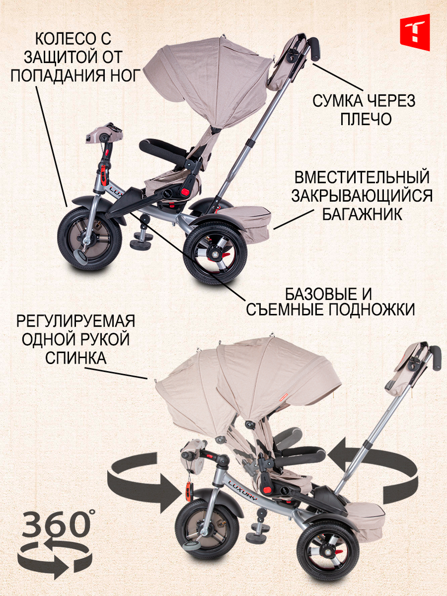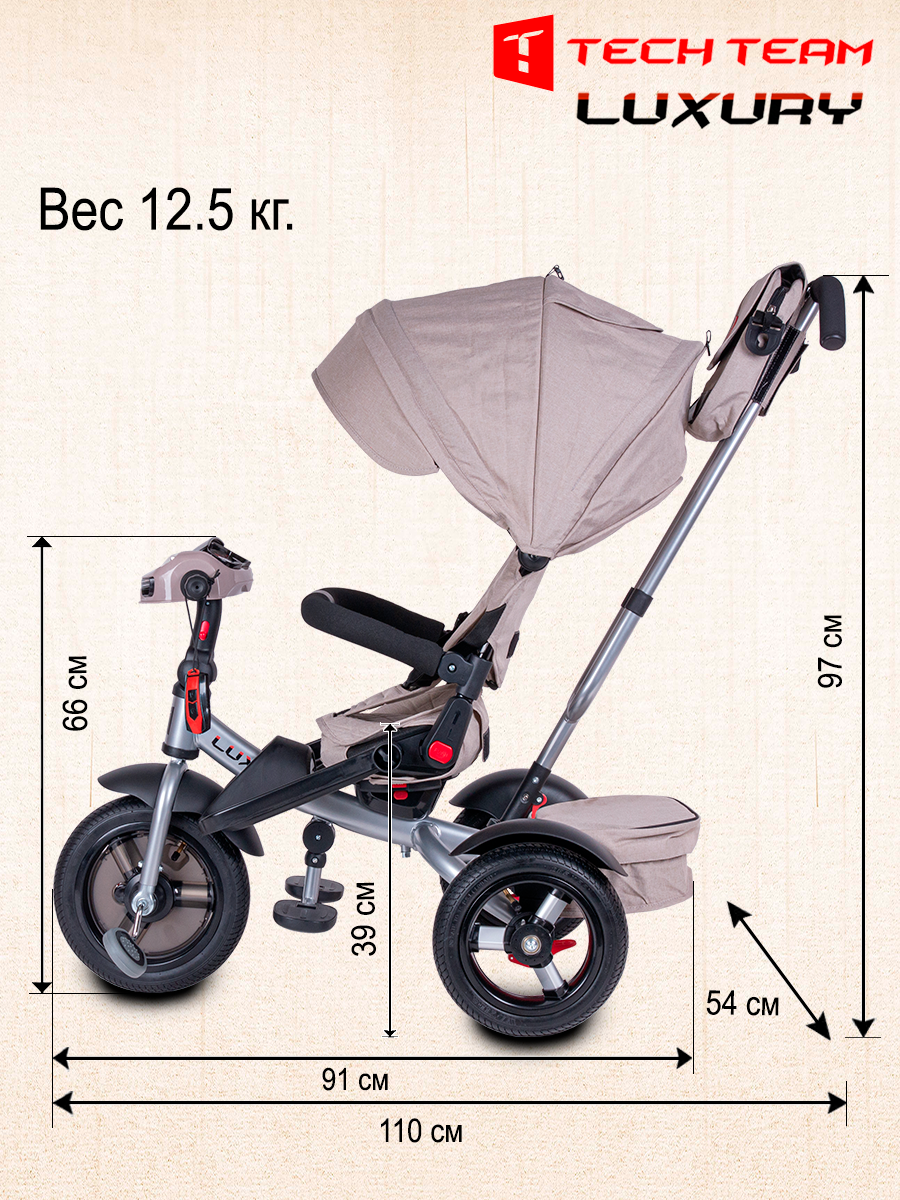 Детский трехколесный велосипед с ручкой Tech Team Luxury 2025 бежевый интересное:
