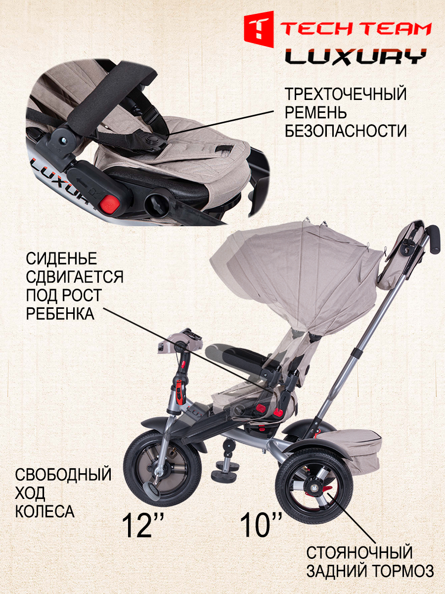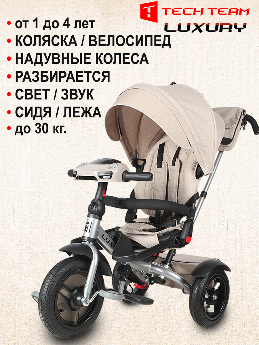 Купить Детский трехколесный велосипед с ручкой Tech Team Luxury 2025 бежевый