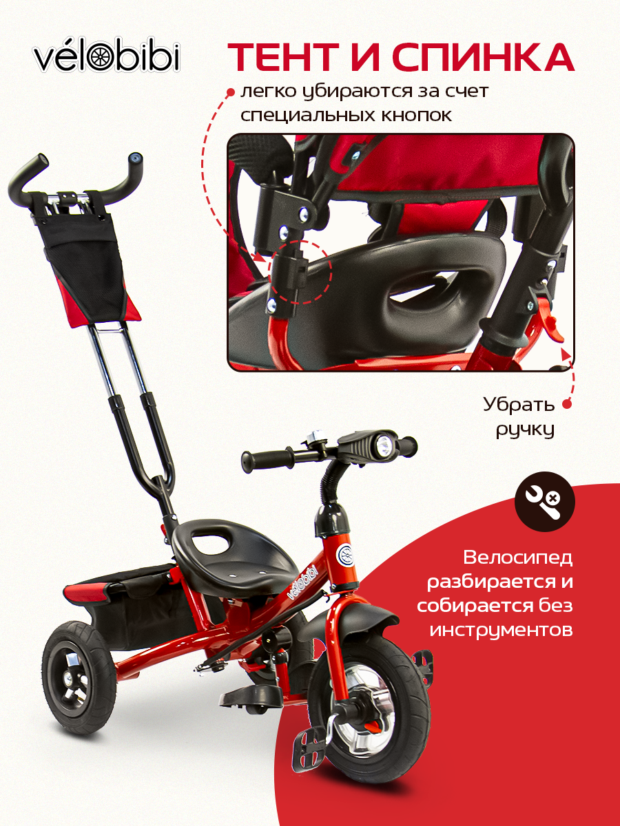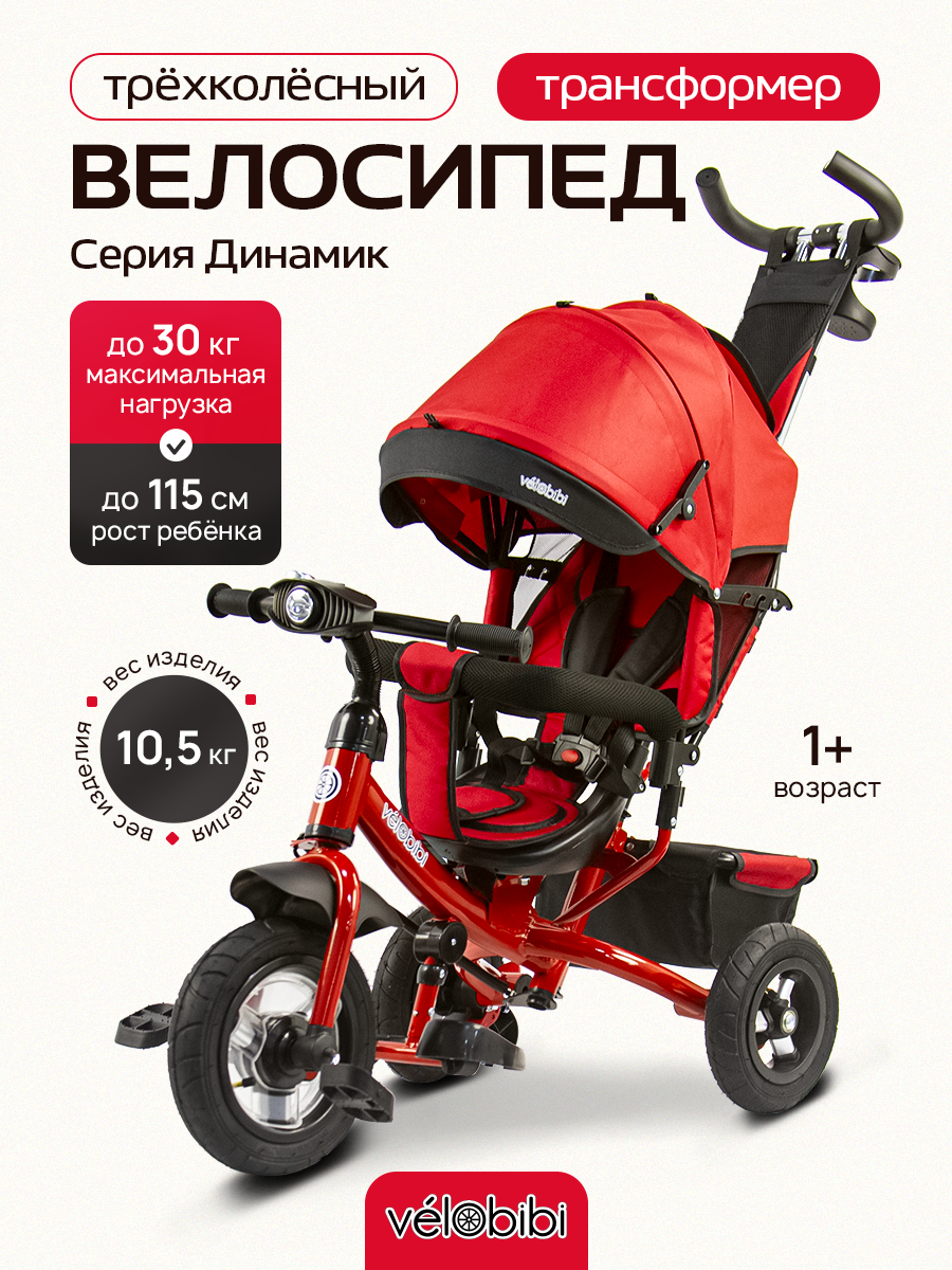Купить Велосипед-трансформер трёхколесный с ручкой ДИНАМИК (колеса надувные 10"/8", музыкальный модуль), красный