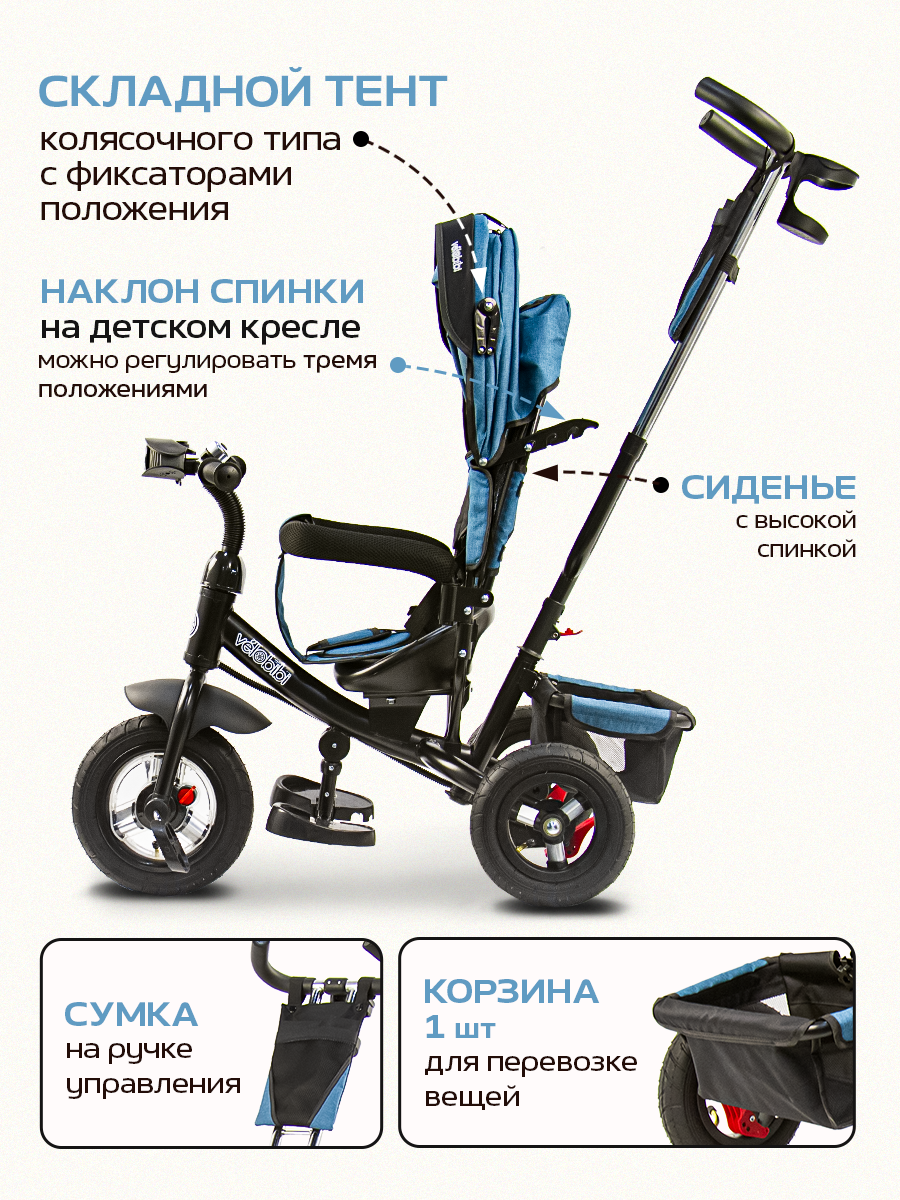Велосипед трехколесный детский ROCKET XEL-288P-1, 3-х колесный, синий