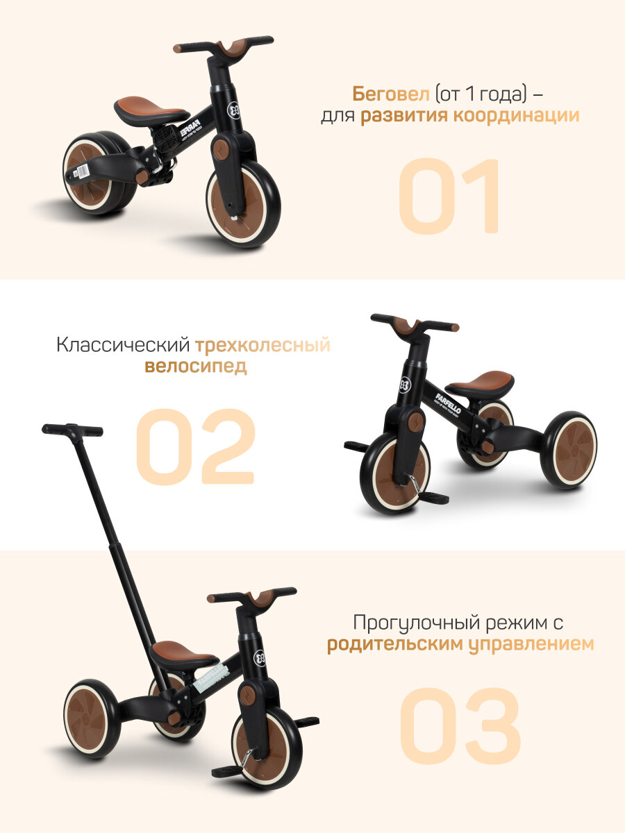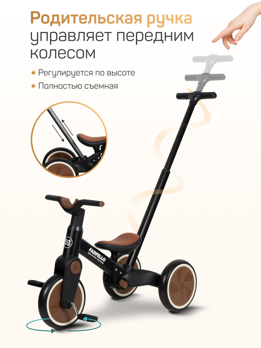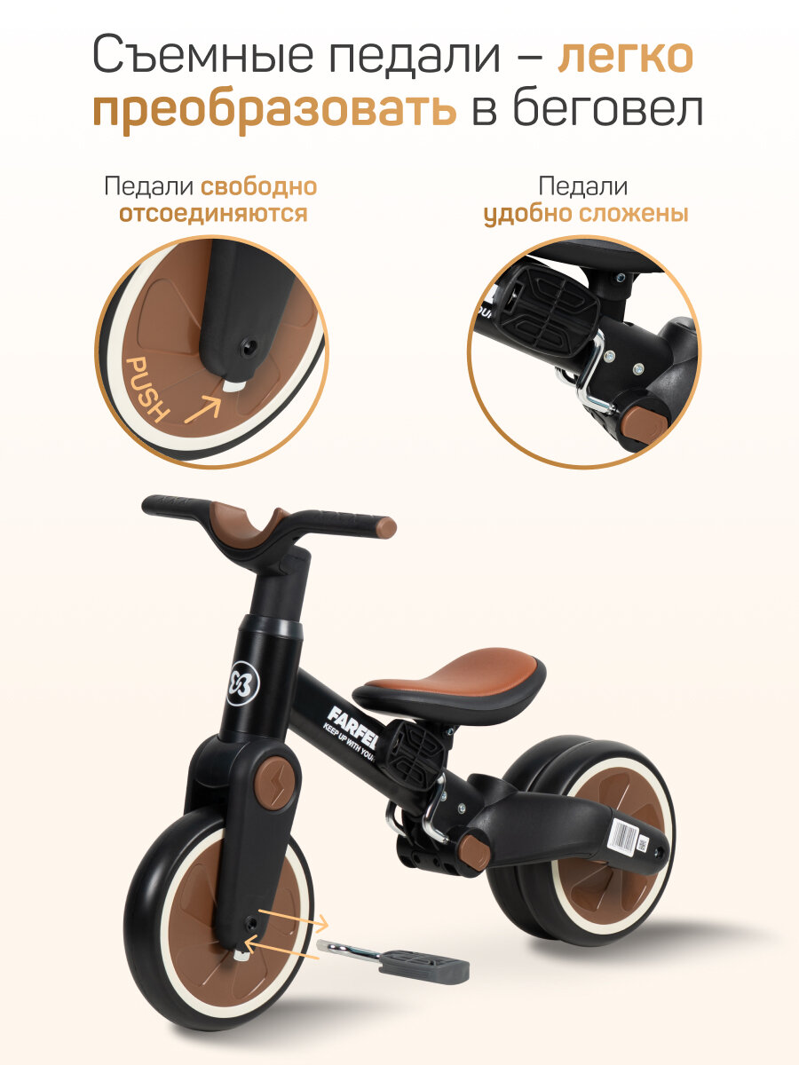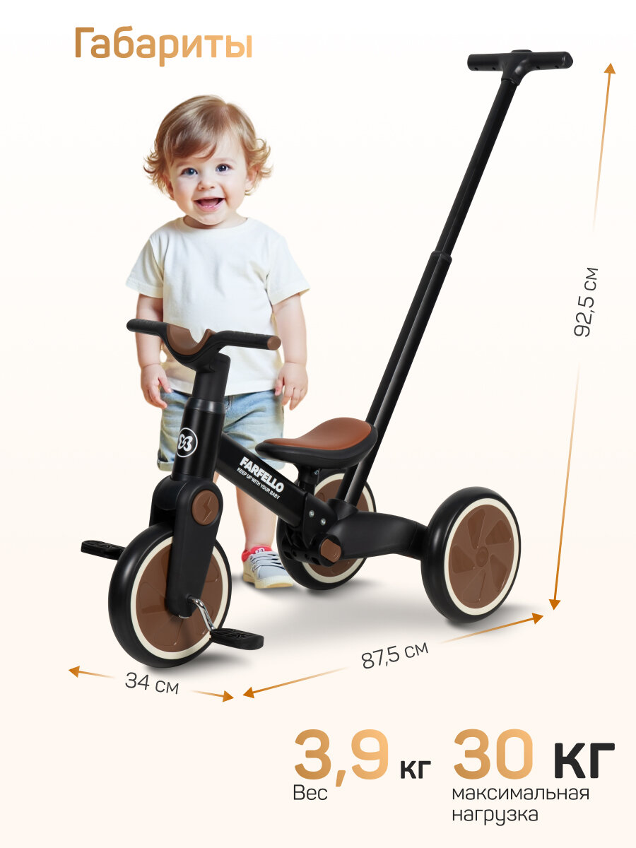 Детский трехколесный Велосипед Farfello 6588, для 1-3 лет, черный интересное: