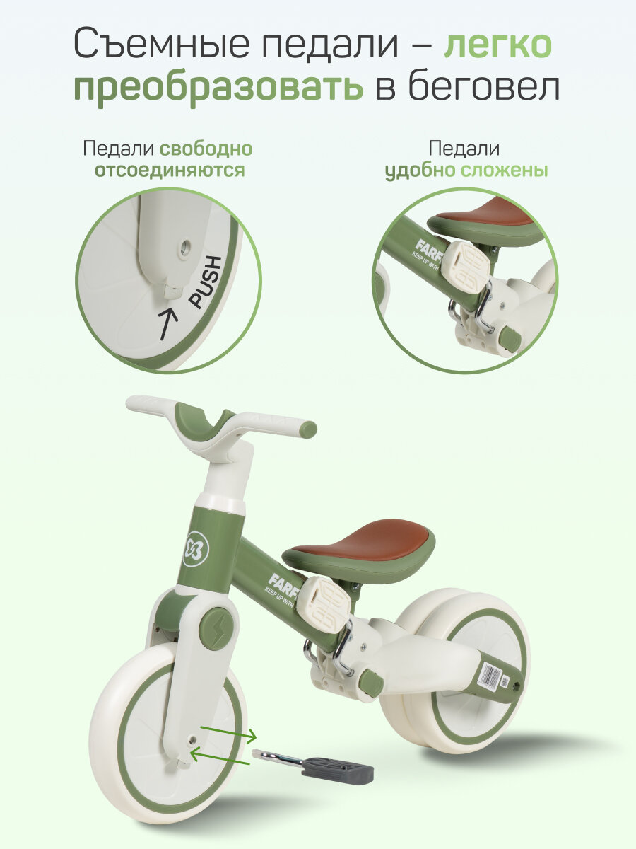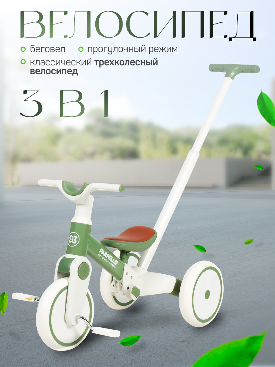Детский трехколесный Велосипед Farfello 6588, для 1-3 лет, зеленый интересное: