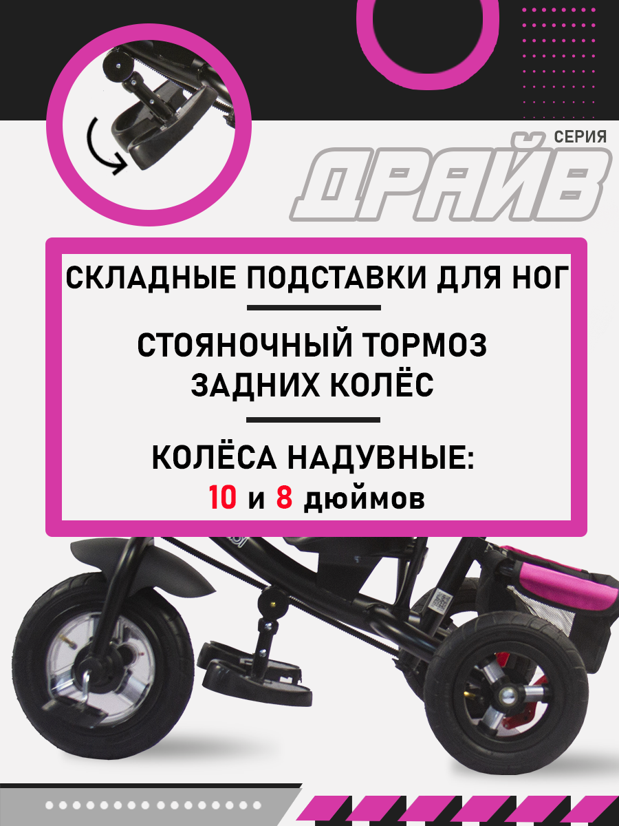 СохранитьВелосипед-трансформер трёхколёсный с ручкой ДРАЙВ (колеса надувные 10"/8", корзина), розовый интересное: