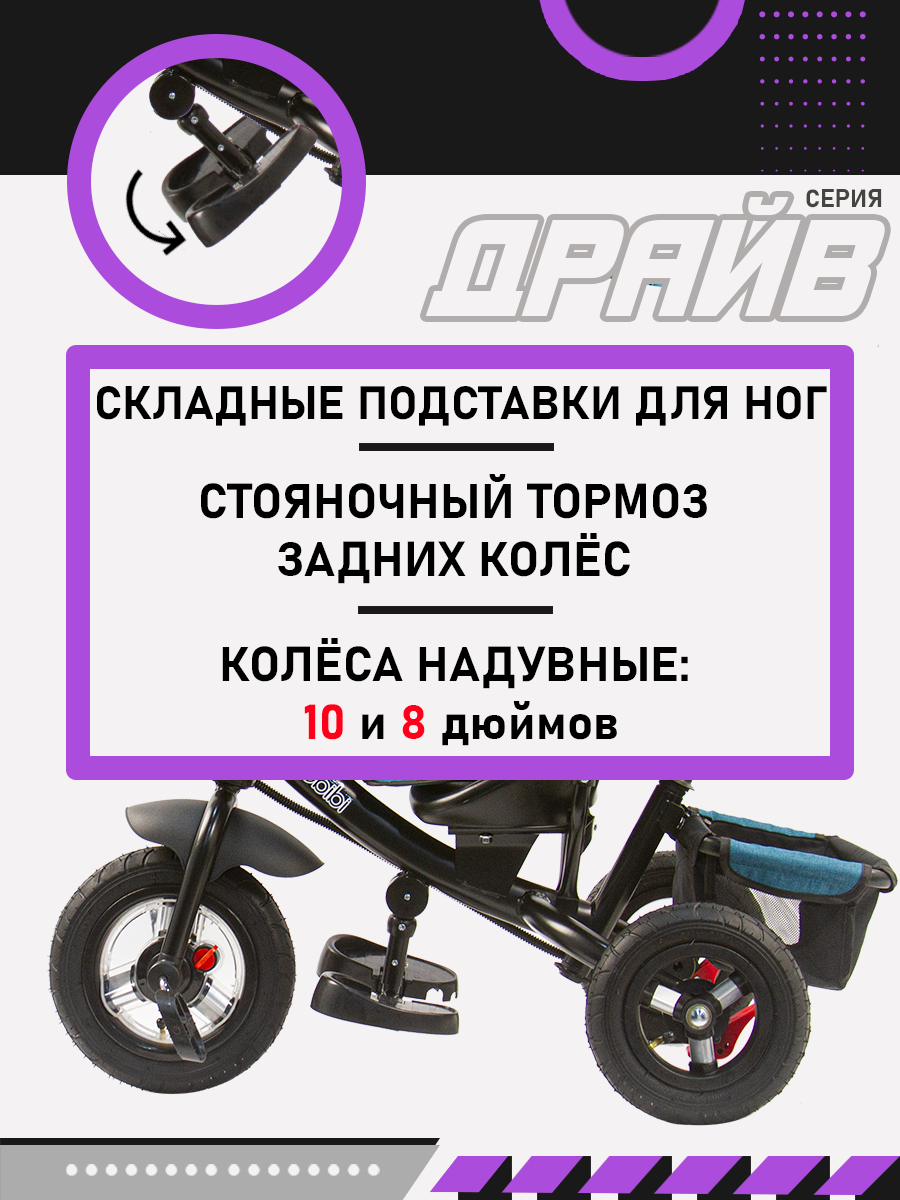 СохранитьВелосипед-трансформер трёхколёсный с ручкой ДРАЙВ (колеса надувные 10"/8", корзина), бирюза интересное: