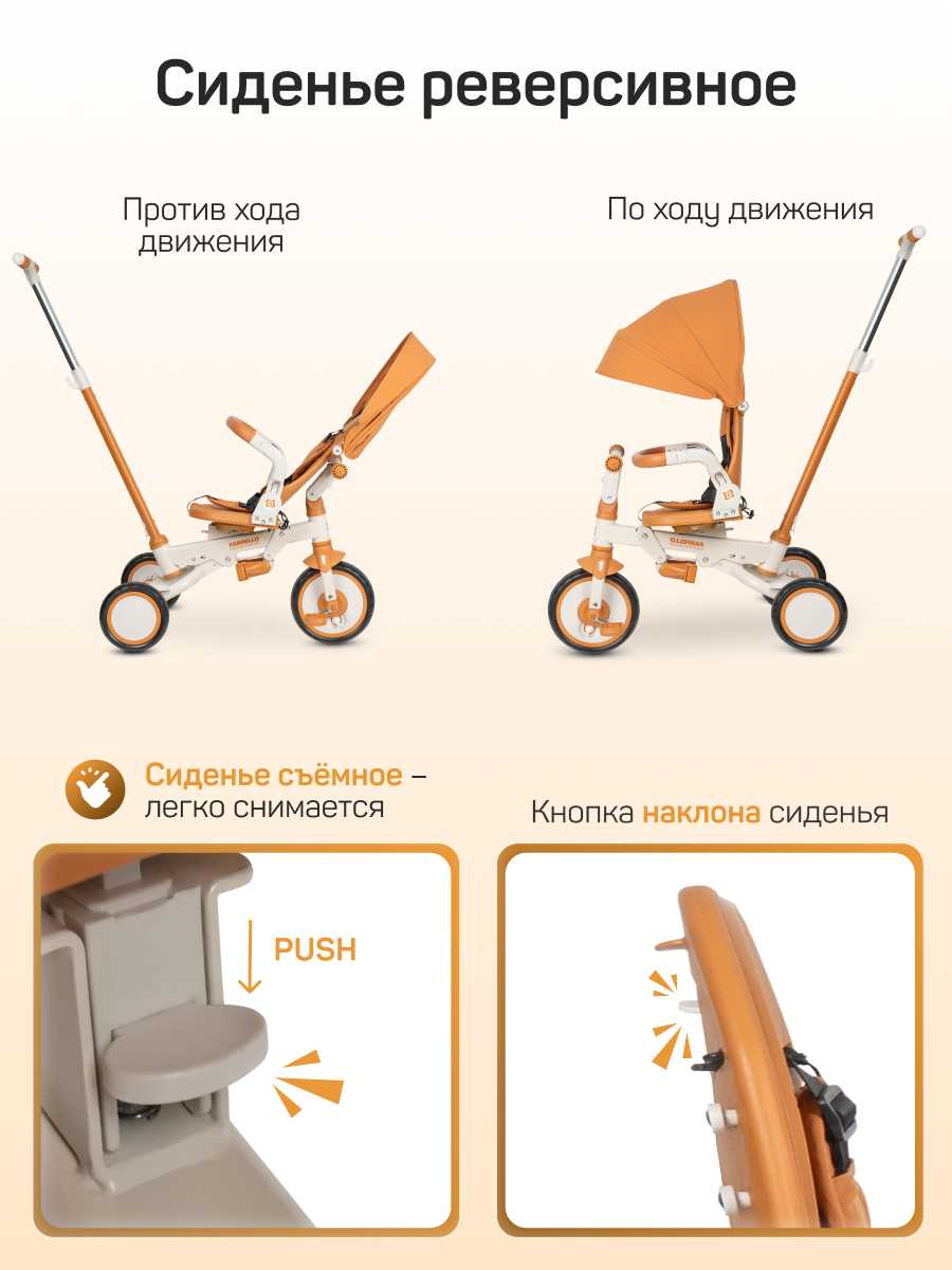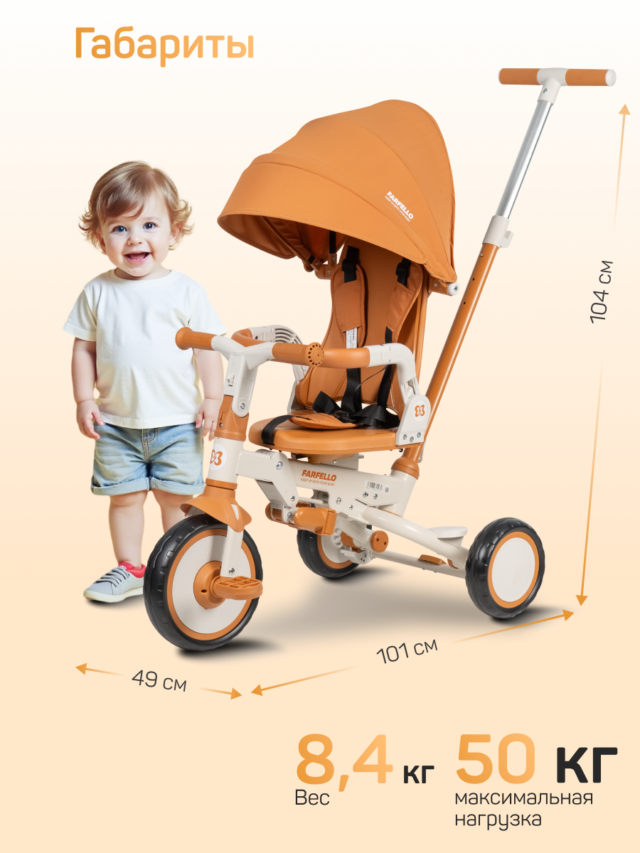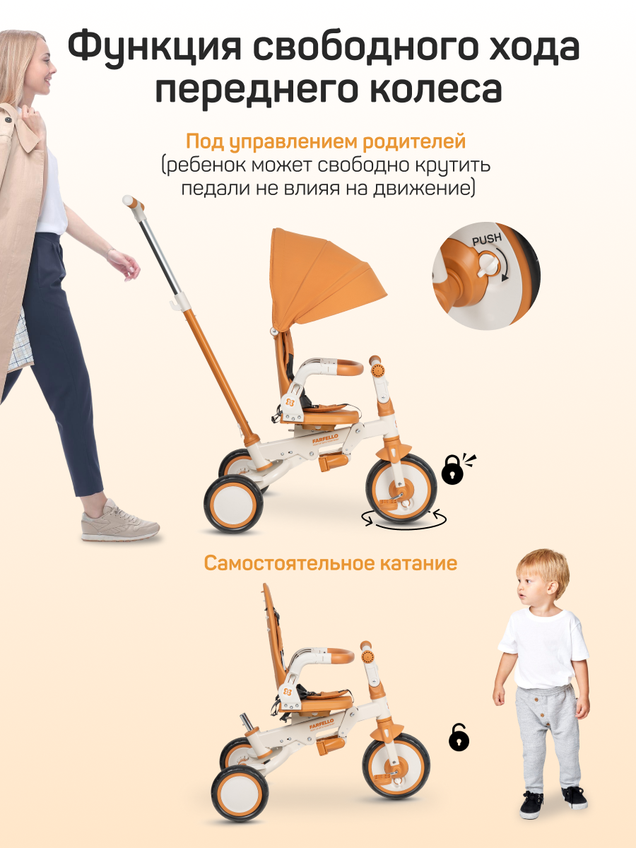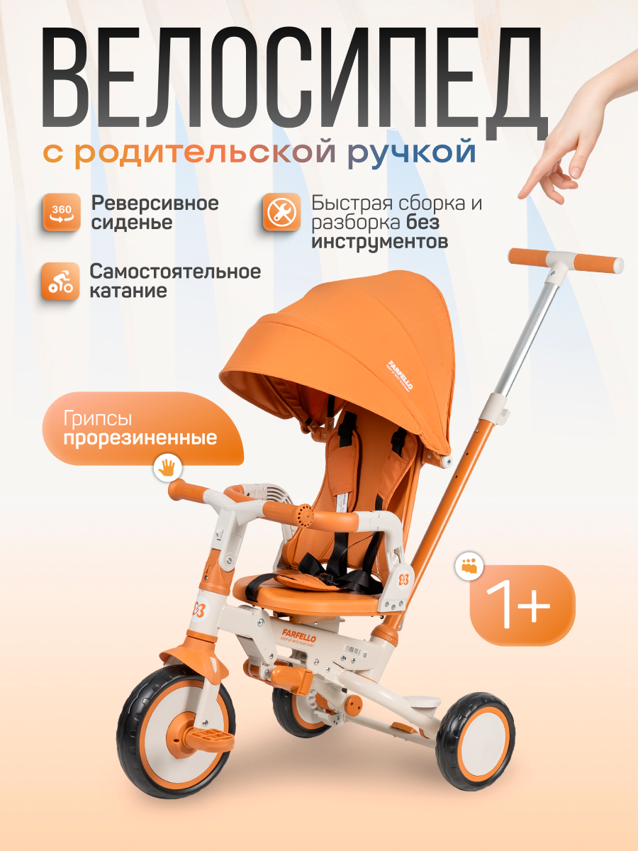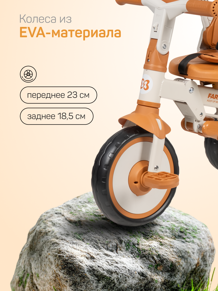 Купить Велосипед трехколесный Farfello 6699, 1-5 лет, управление для родителей, цвет Сафари