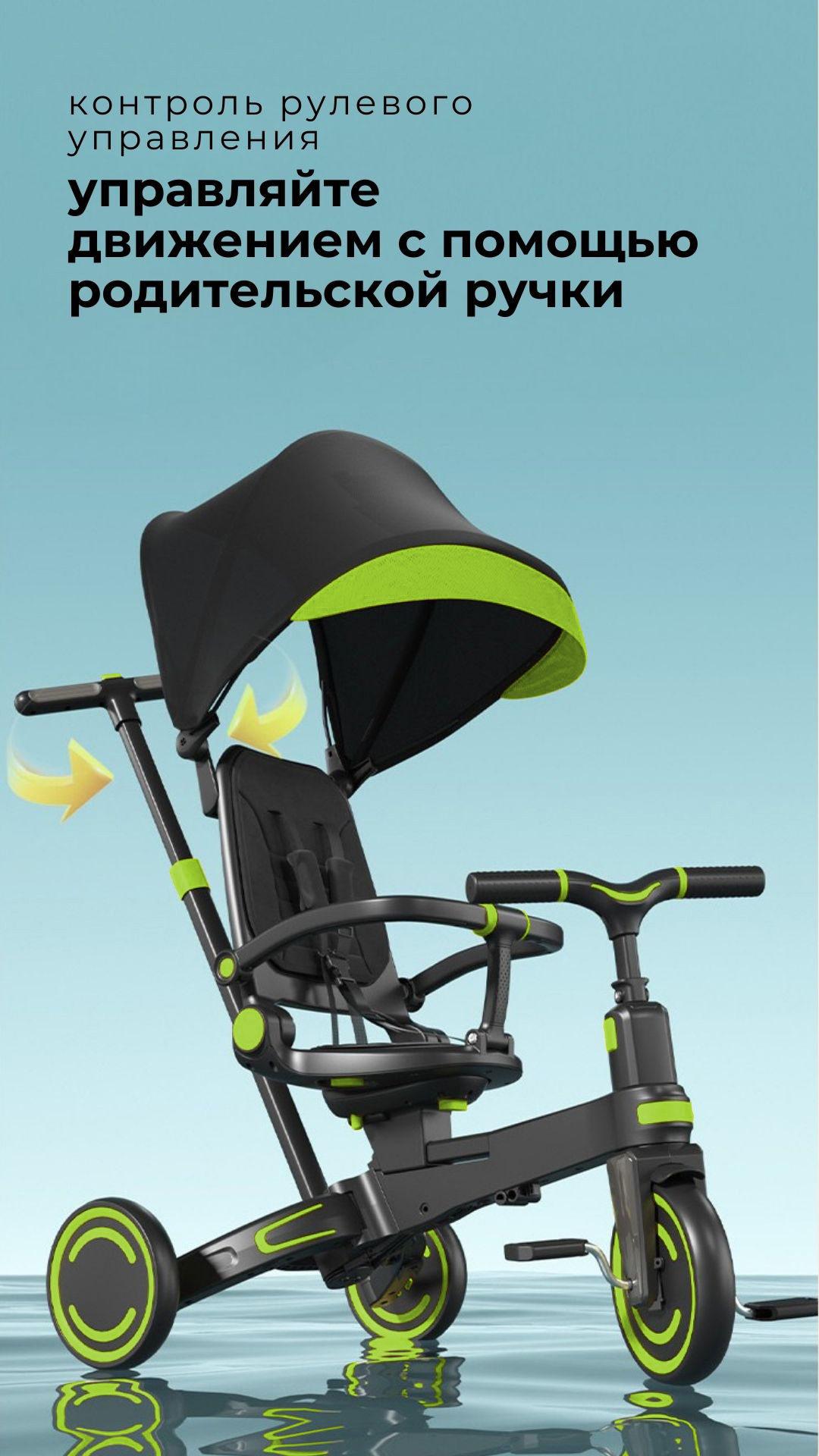 Детский складной трехколесный велосипед трасформер 9 в 1с родительской ручкой NITRO BubaGo черный/зеленый интересное: