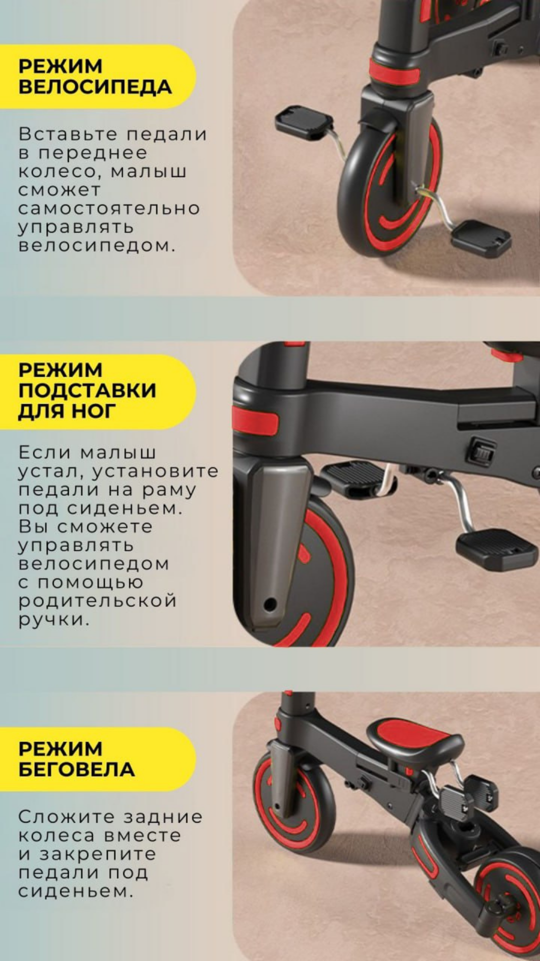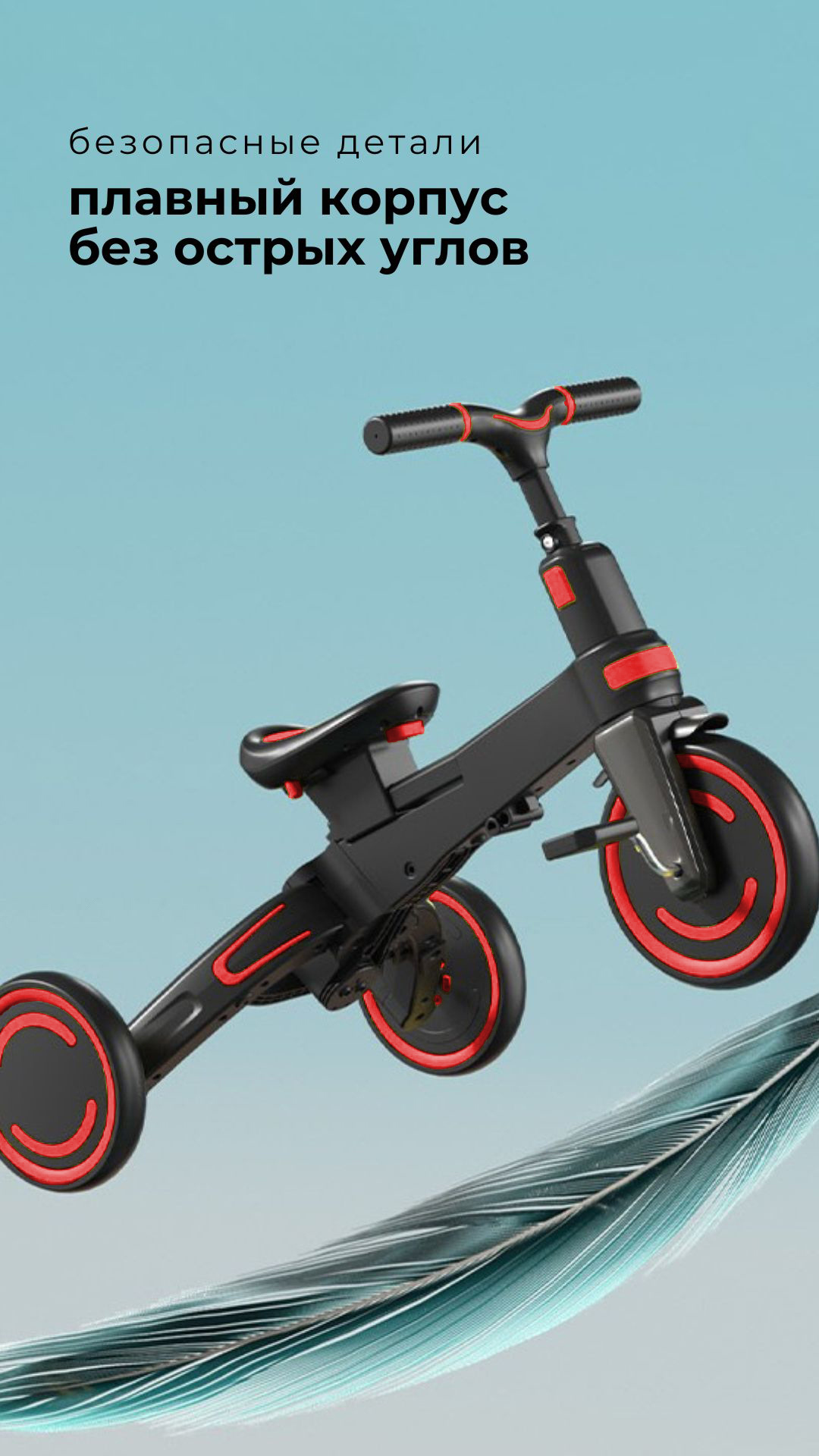 Детский складной трехколесный велосипед трасформер 9 в 1с родительской ручкой NITRO BubaGo интересное: