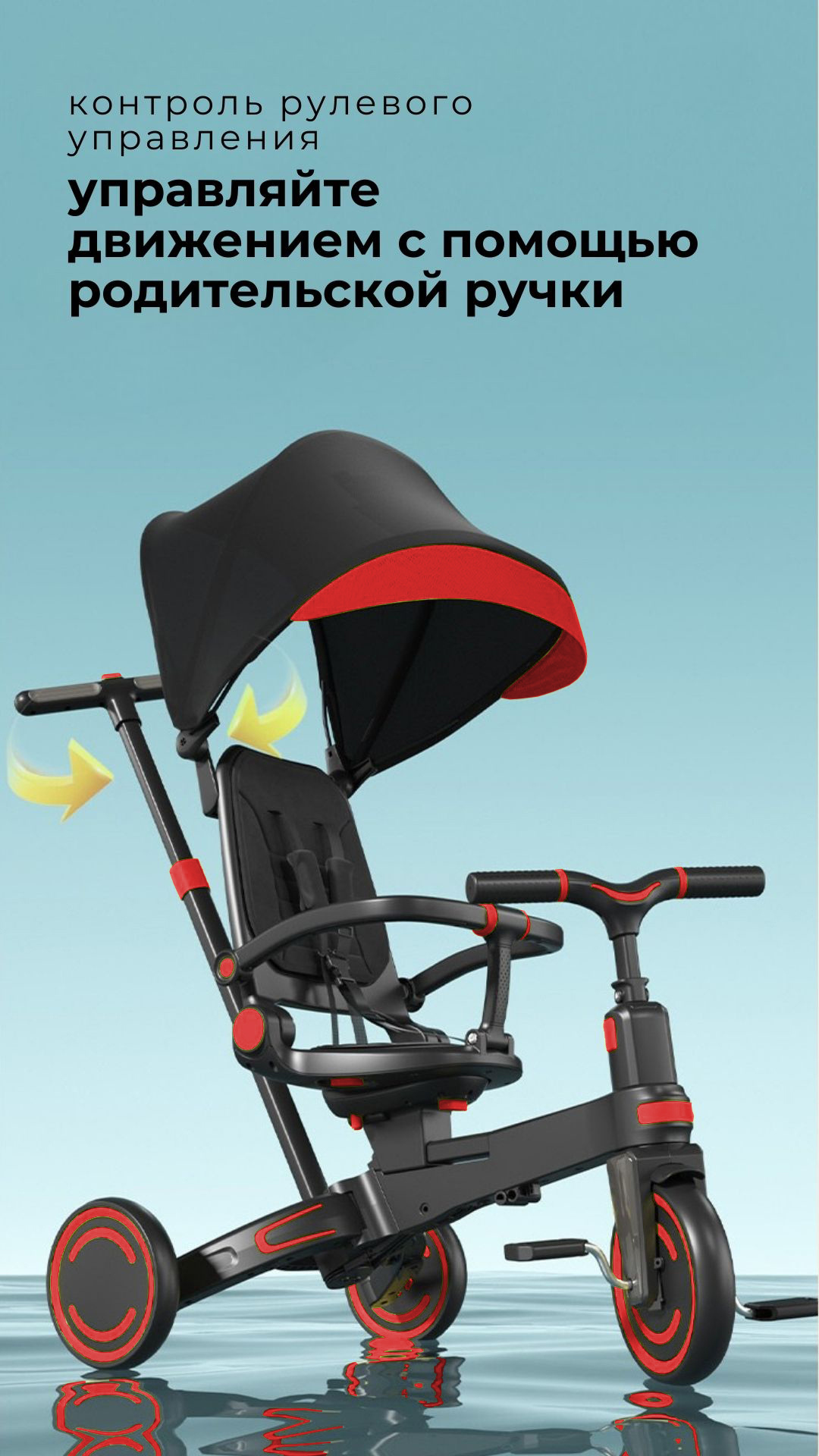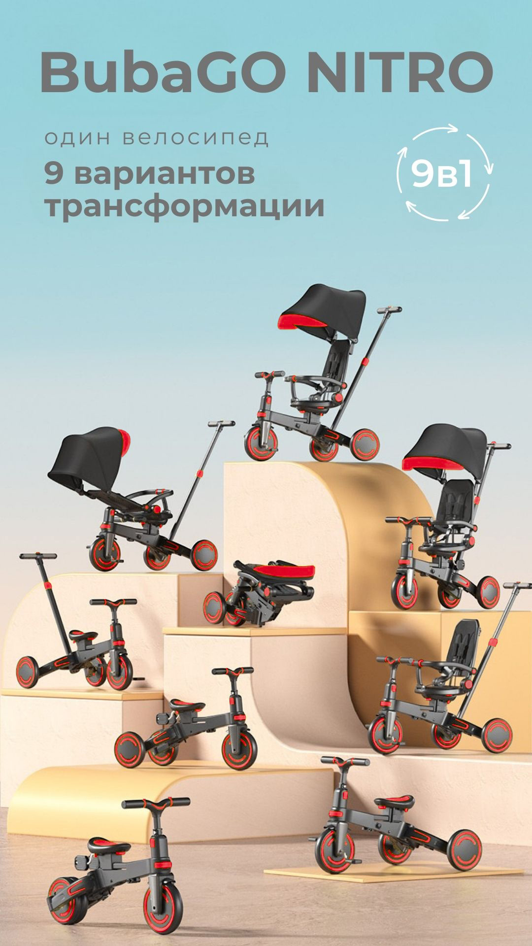 Купить Детский складной трехколесный велосипед трасформер 9 в 1с родительской ручкой NITRO BubaGo