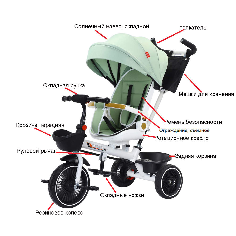 Велосипед-коляска, сталь, трехколесный, от 6 мес. до 6 лет, салатовый интересное: