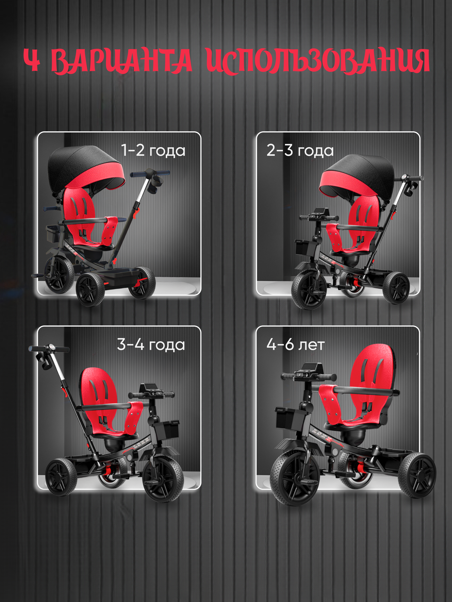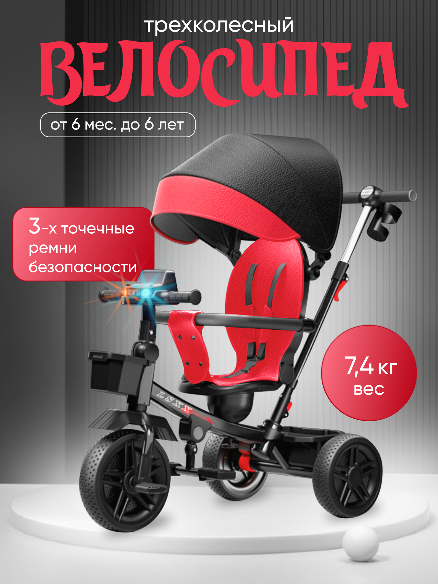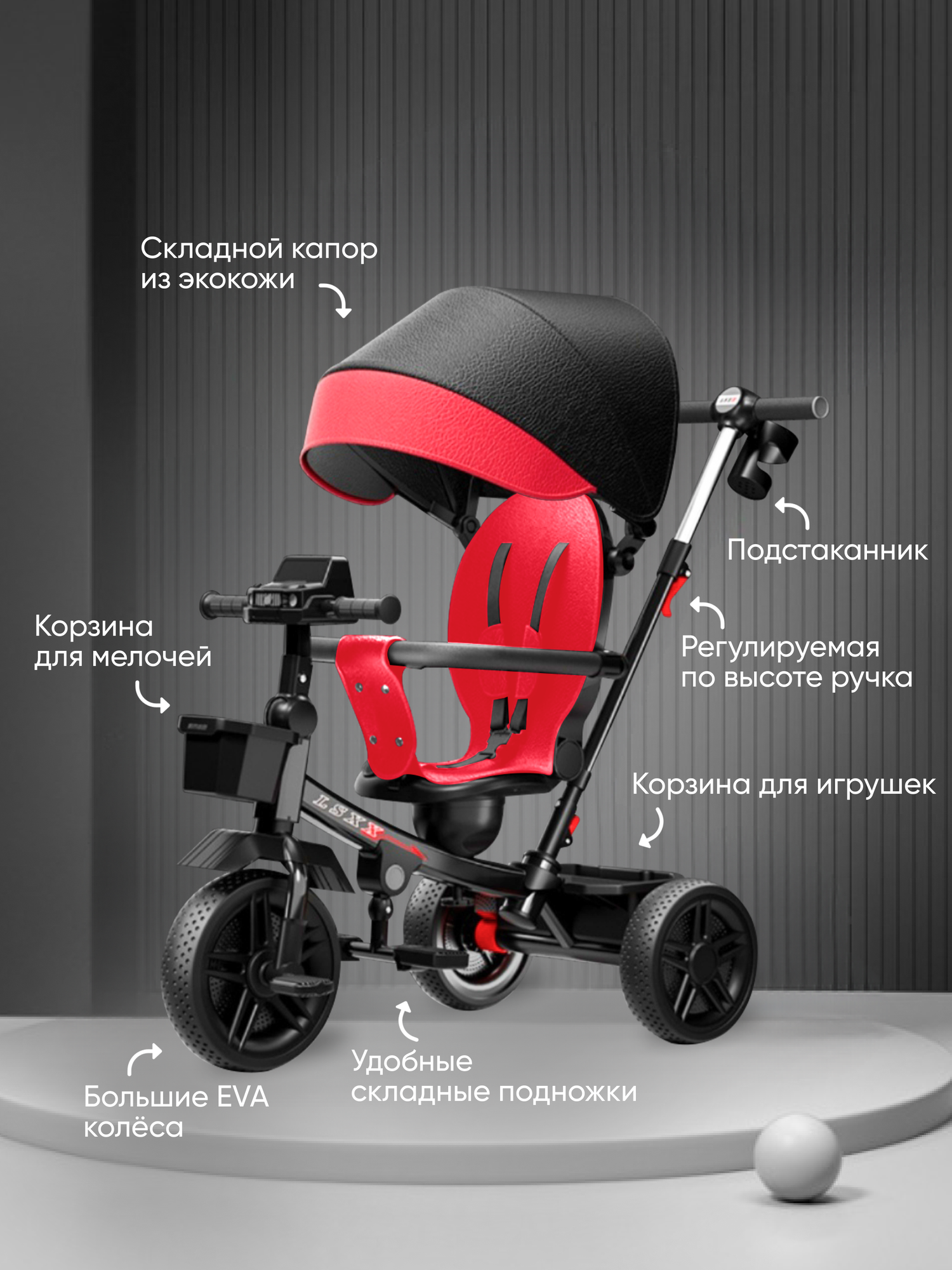 Велосипед детский с ручкой LSXX PREMIUM CL- 869, черный, с поворотным сиденьем интересное: