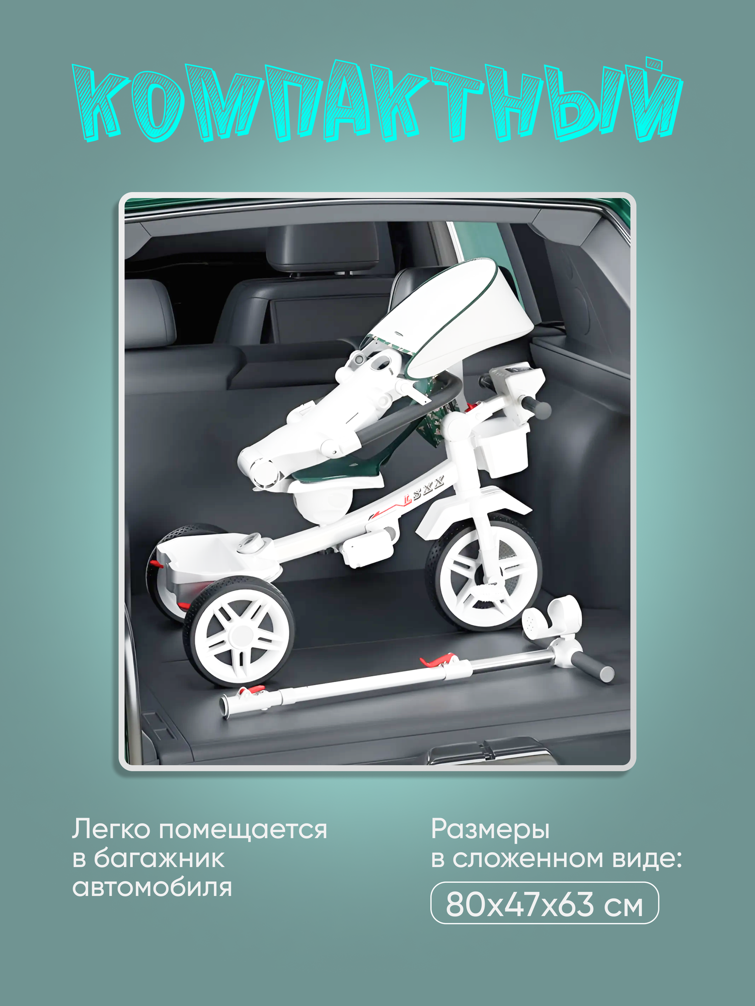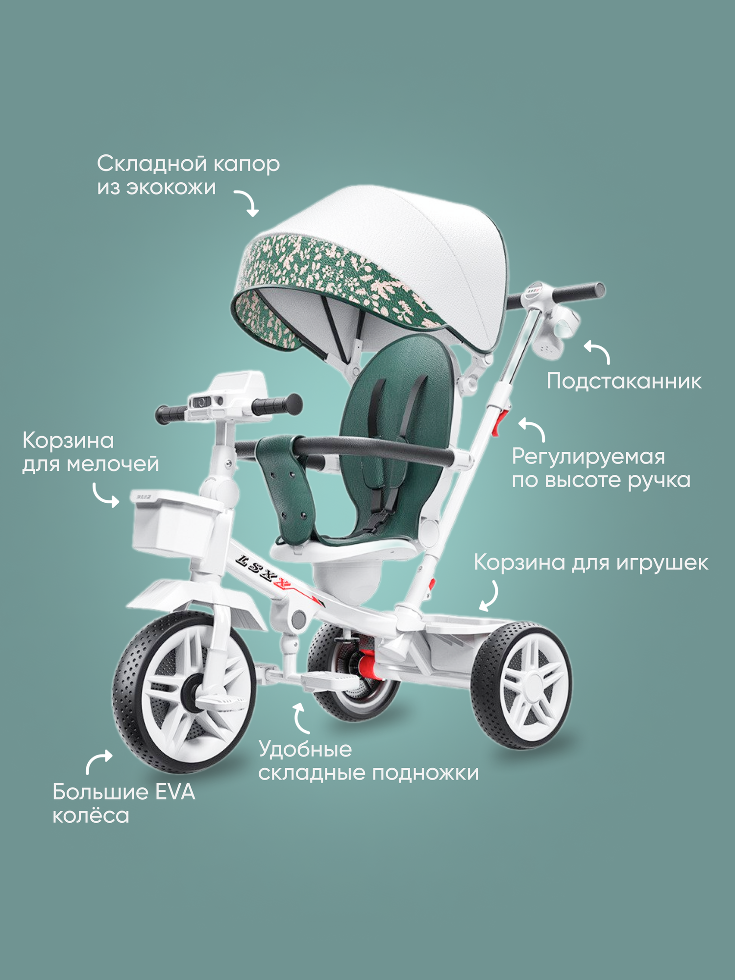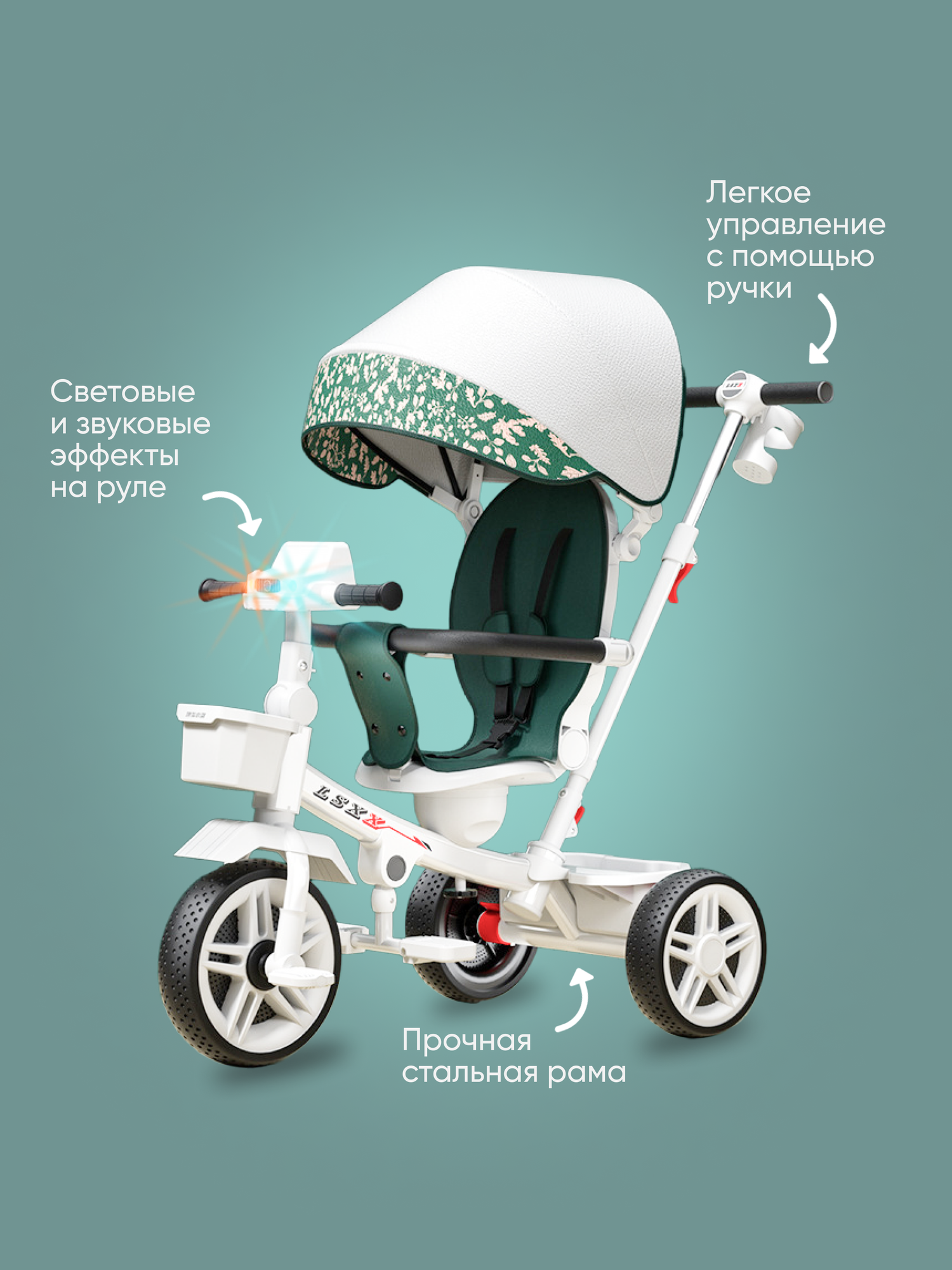 Велосипед детский с ручкой LSXX PREMIUM CL- 869, бело-зеленый, с поворотным сиденьем интересное: