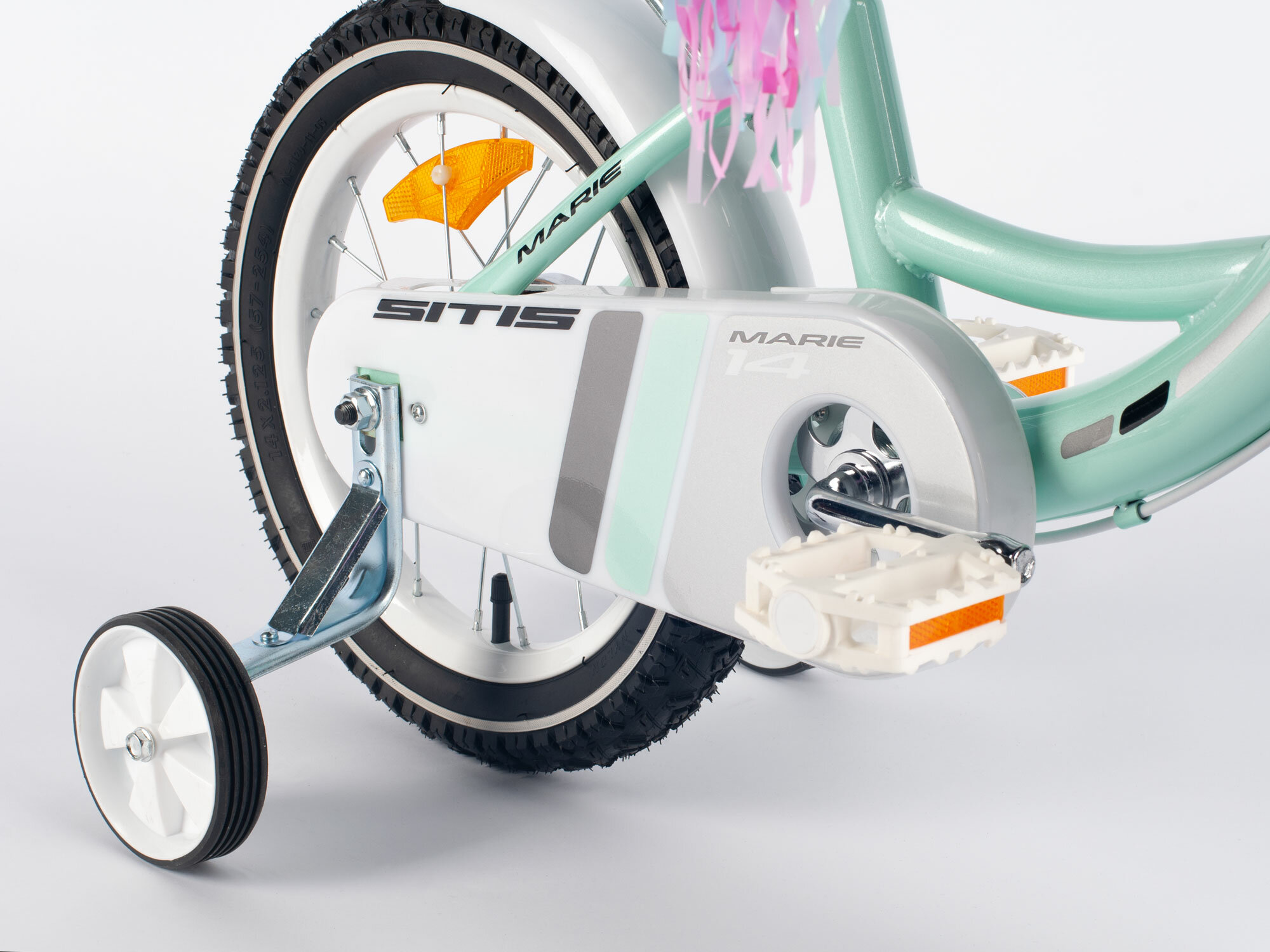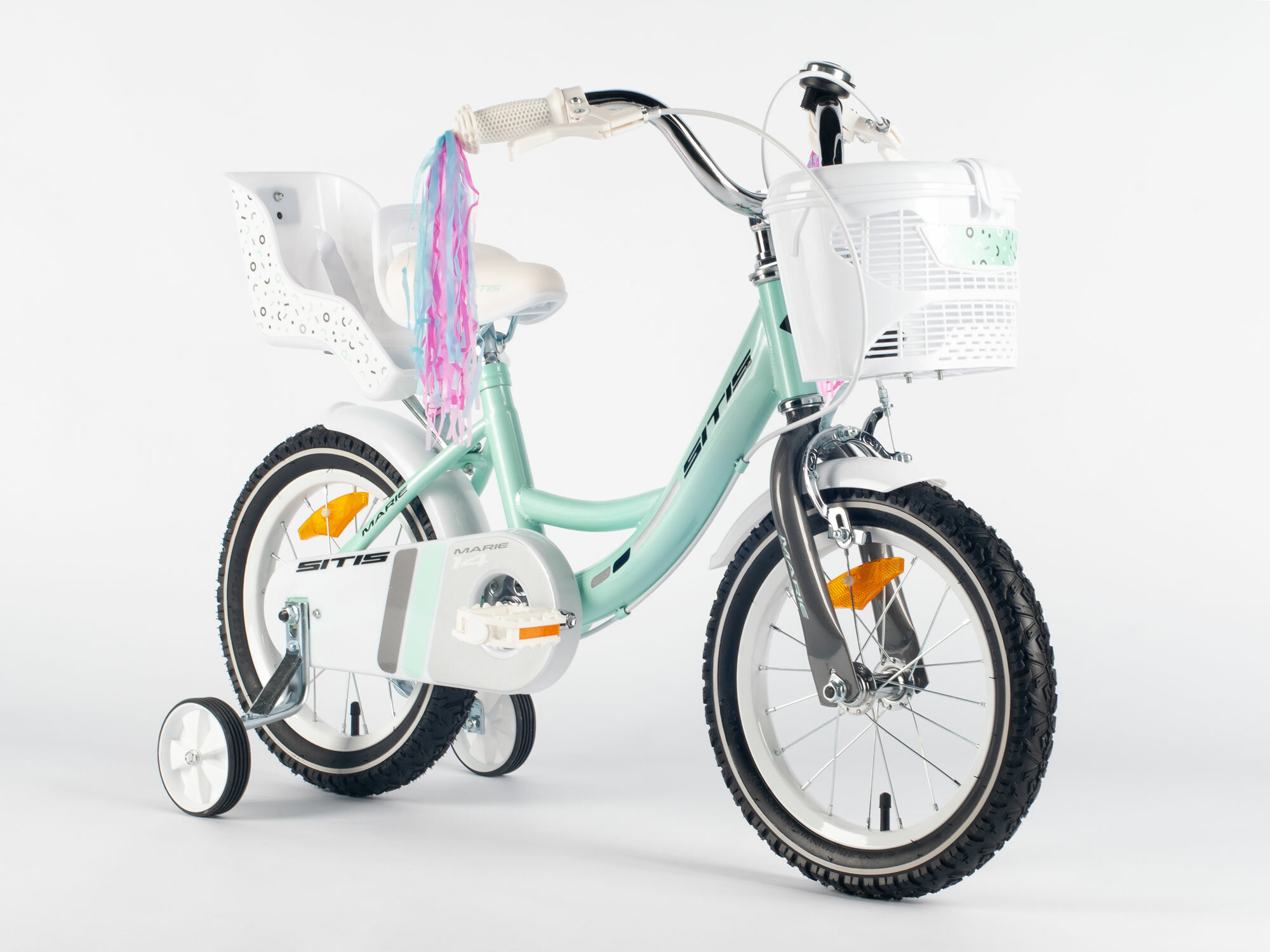 Купить Велосипед Sitis Marie 14" (2024) для девочек, 1 скорость, для роста 95-110 см, цвет Mint, ободной и барабанный тормоз