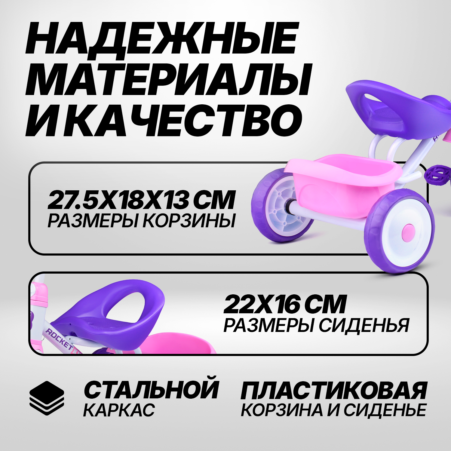 Велосипед трехколесный детский Rocket, колеса EVA 10"/8", для детей 1,5 - 3 лет, фиолетовый