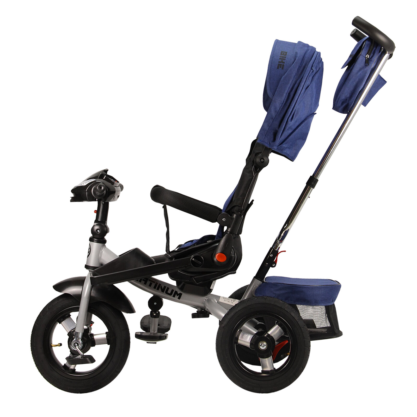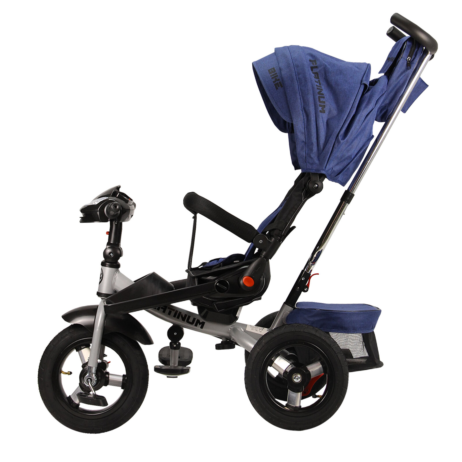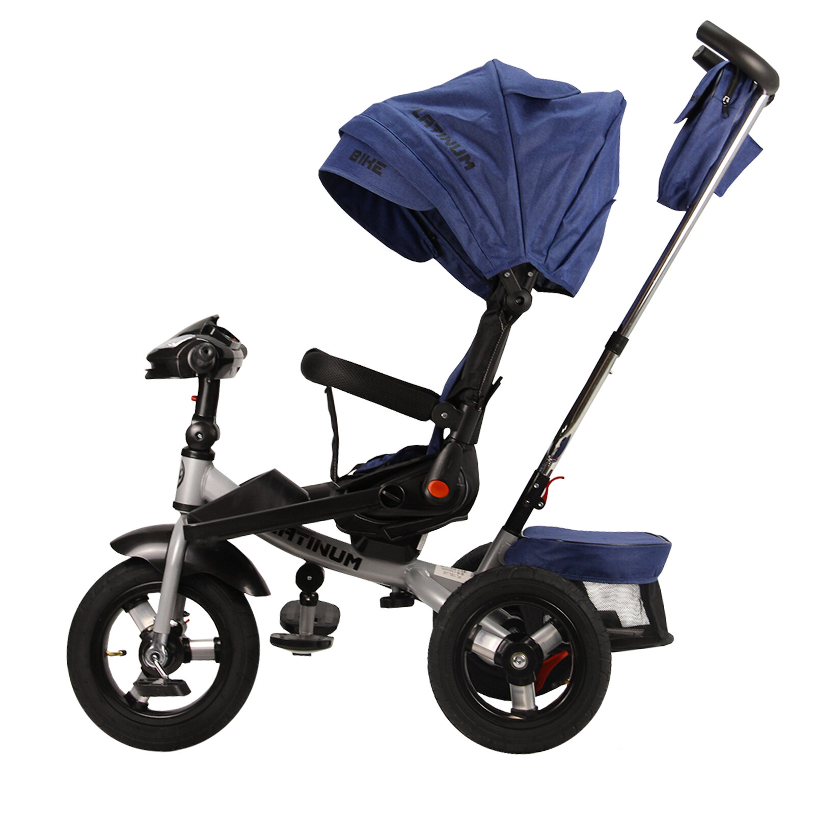 Купить Велосипед трехколесный детский с ручкой и козырьком Platinum; 1-4 года; синий