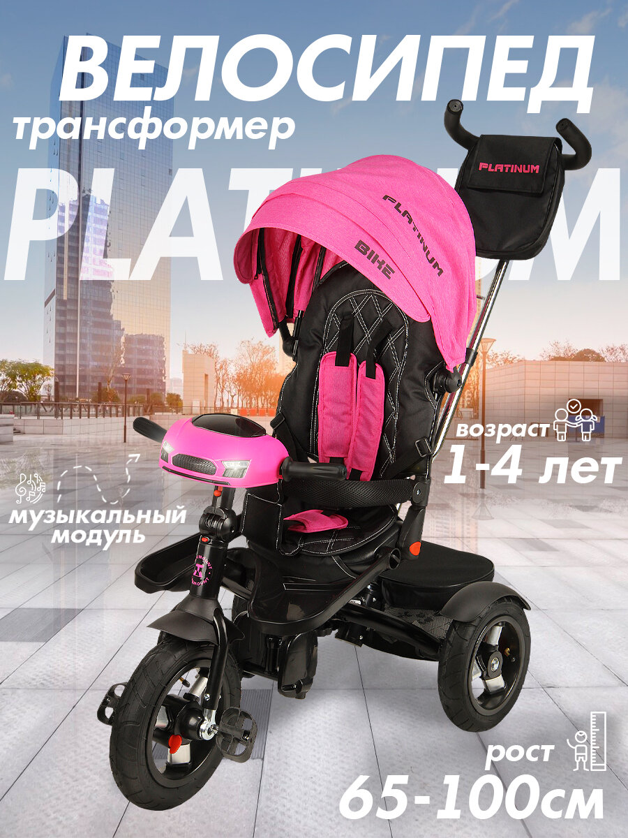 Велосипед трехколесный детский с ручкой и козырьком Platinum; 1-4 года; розовый интересное: