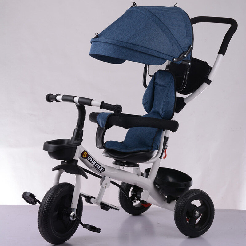 Детский трехколесный велосипед, для 3-7 лет, складной, с козырьком, цельные шины