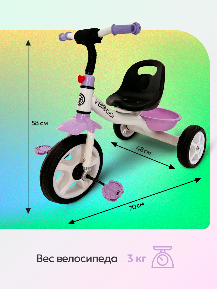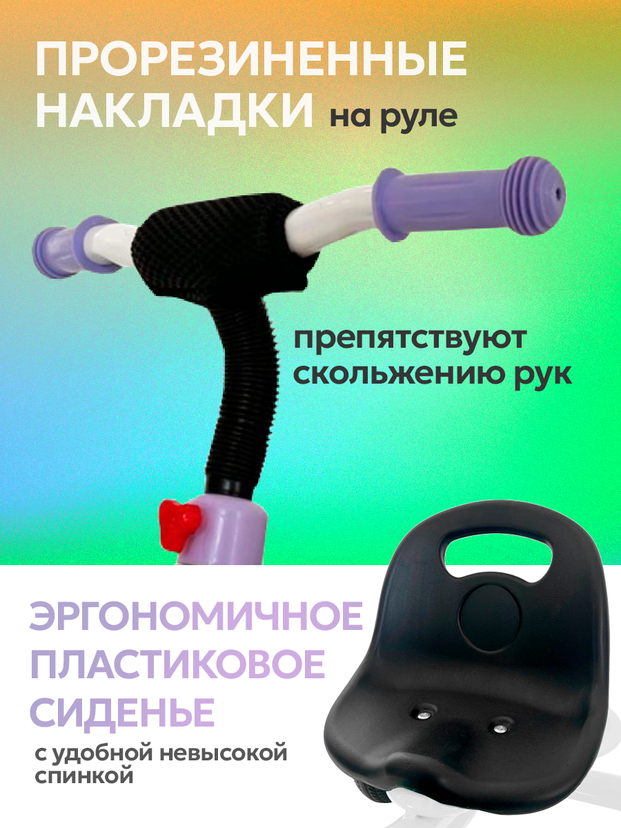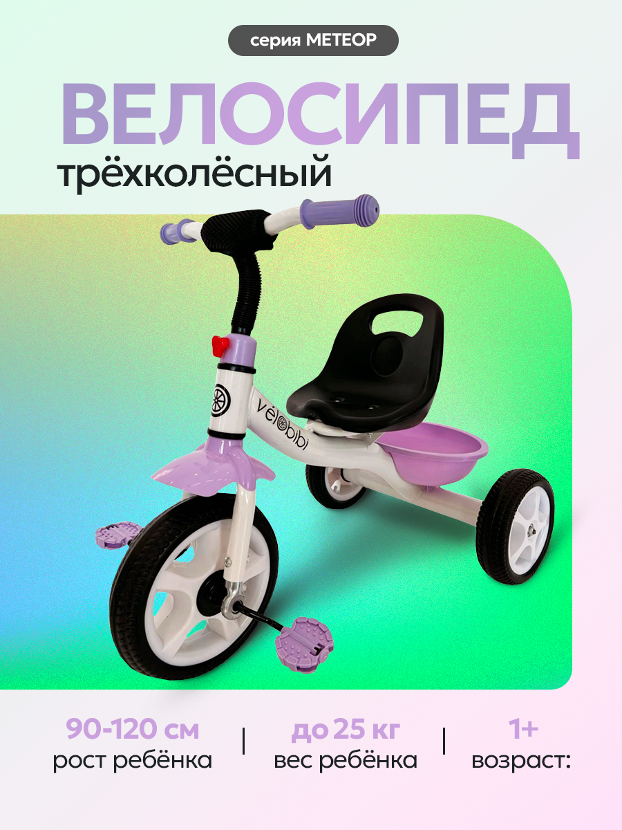 Велосипед трехколесный МЕТЕОР, максимальная нагрузка 25кг (колеса EVA 10"/8"), фиолетовый с белым интересное: