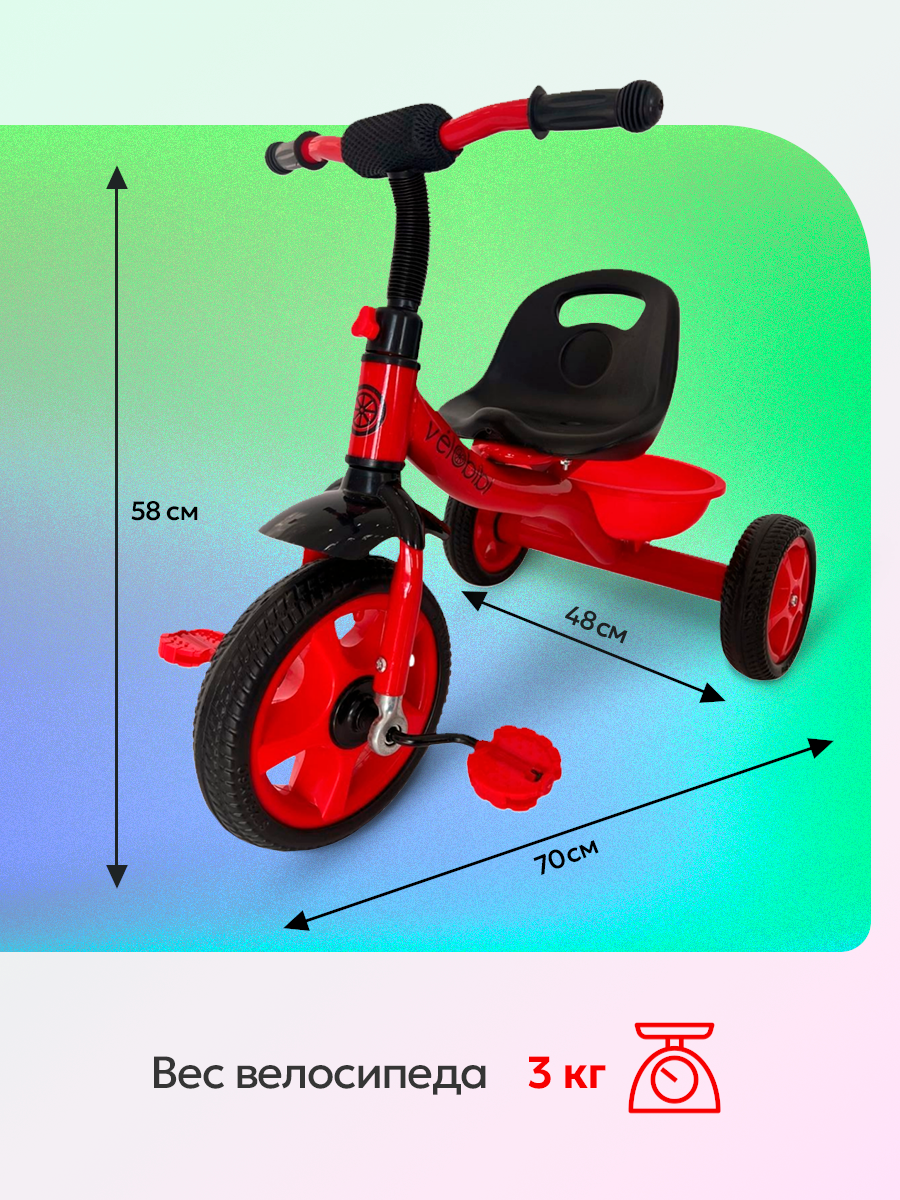 Велосипед трехколесный МЕТЕОР, максимальная нагрузка 25кг (колеса EVA 10"/8"), красный интересное:
