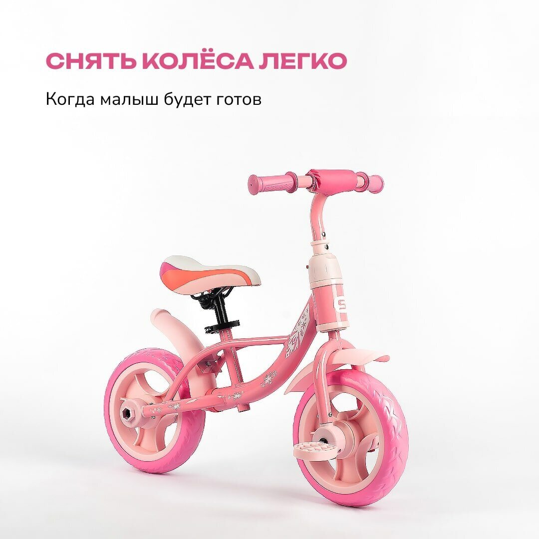 Беговел-велосипед 2 в 1 детский двухколёсный SITIS PRINCESS 12" от 1 до 2 лет для детей, сталь, розовый, рост 85-100 см интересное: